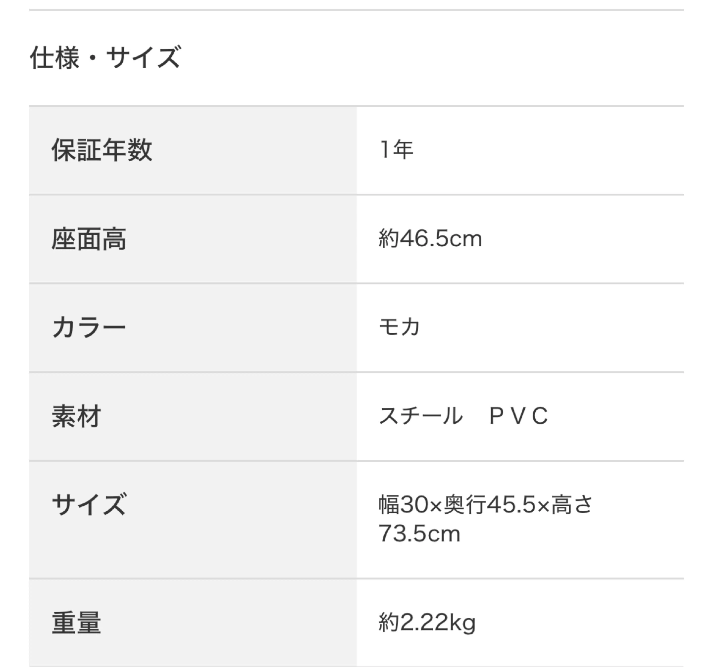 あたたかさ折りたたみ椅子です ●床のキズの予防に。脚部にキャップやフェルトなどの加工付き。勝手に閉じない。ストッパー付きで安全性アップ。しっかり座りたいときに ■折りたたみの際は、指をはさまないようご注意下さい ■座面の高さ(約):46.5cm ・カラー:モカ ・サ イズ:幅30×奥行45.5×高さ73.5cm ・座面高:約46.5cm ・素材:スチール、PVC 中古品であることご了承ください