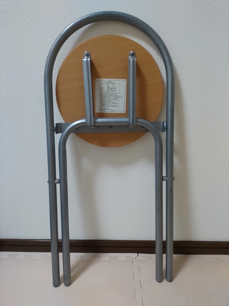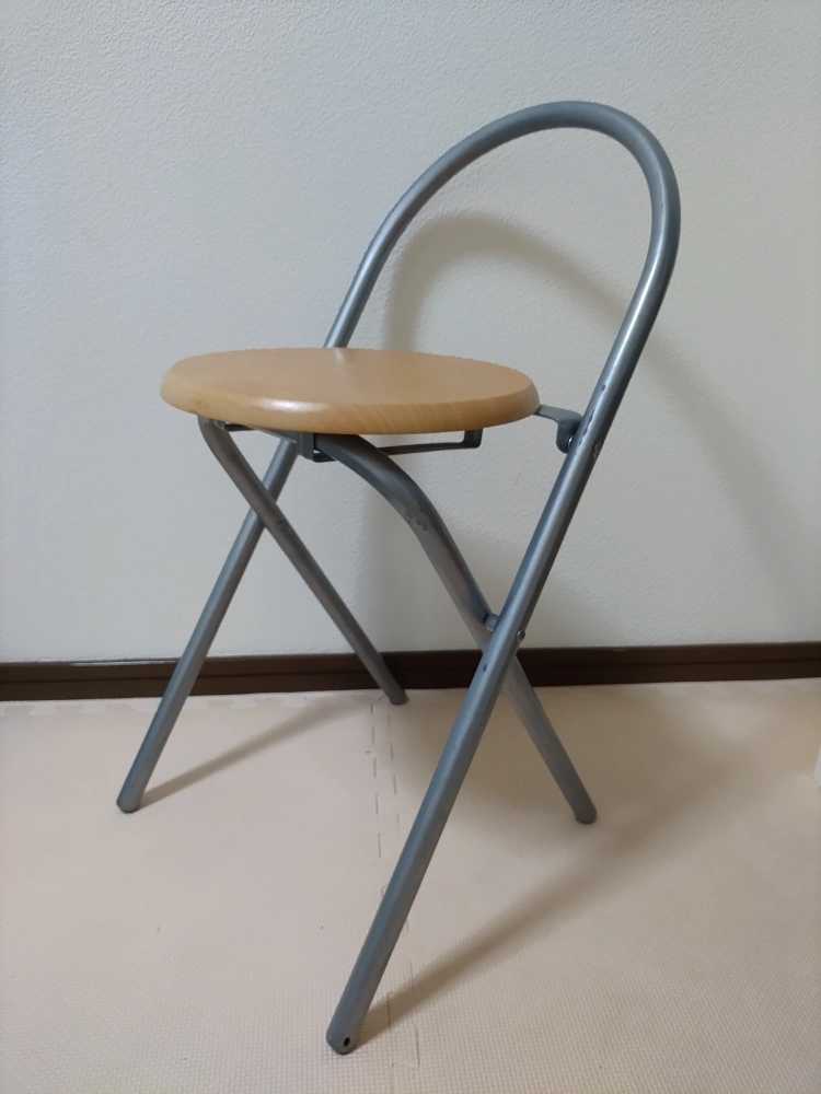 丸い折り畳み椅子です 足のゴムカバーがありません。 椅子の足カバーをつけてご使用ください。 ・色:木製座面、シルバーフレーム ・サイズ:幅350mm、奥行き400mm、高さ670mm ・座面の高さ:470mm ・使用感はありますが、まだお使いいただけます 中古品であることご了承ください