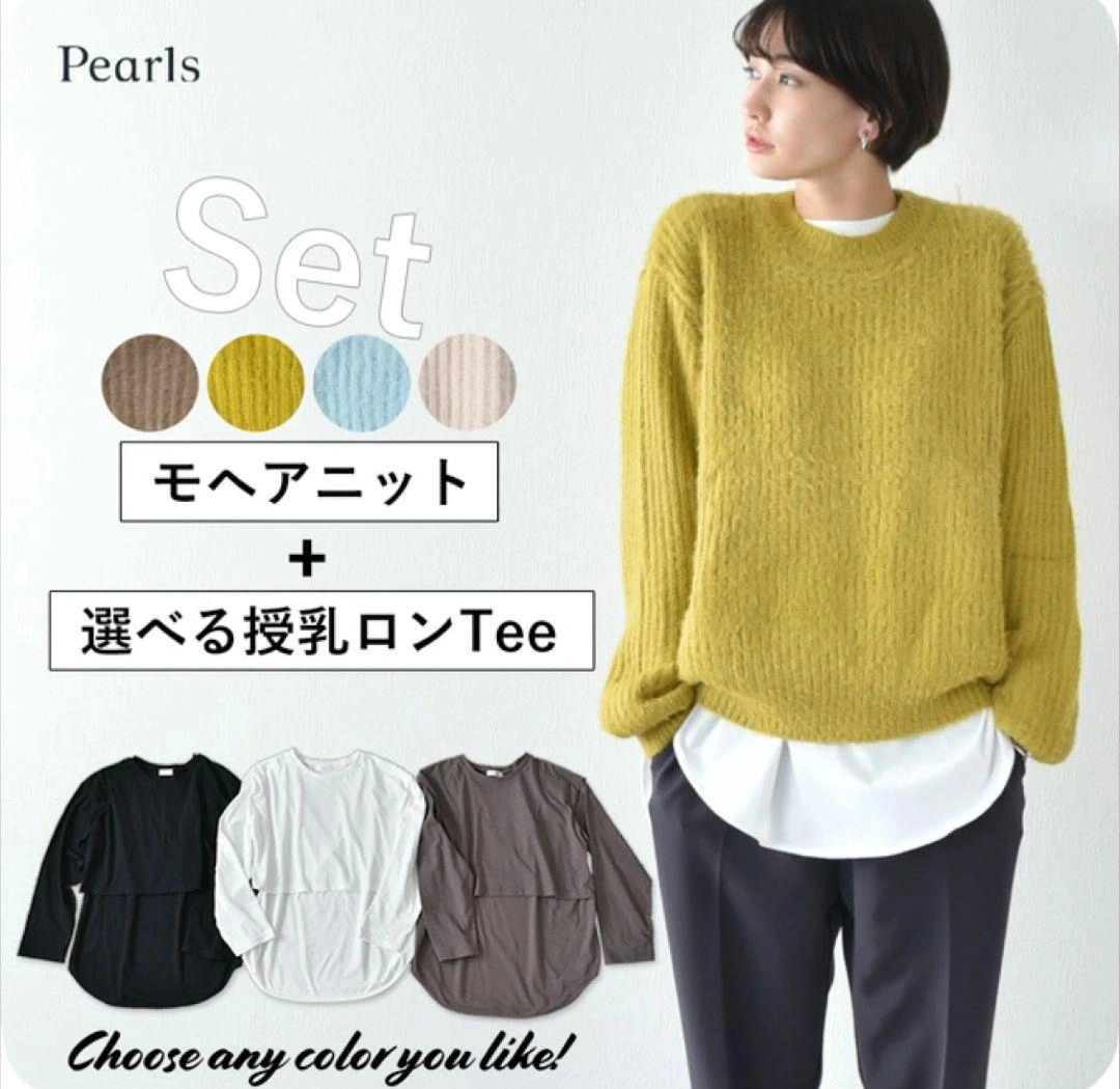 授乳服 マスタード モヘアニット ロンTセット 秋冬