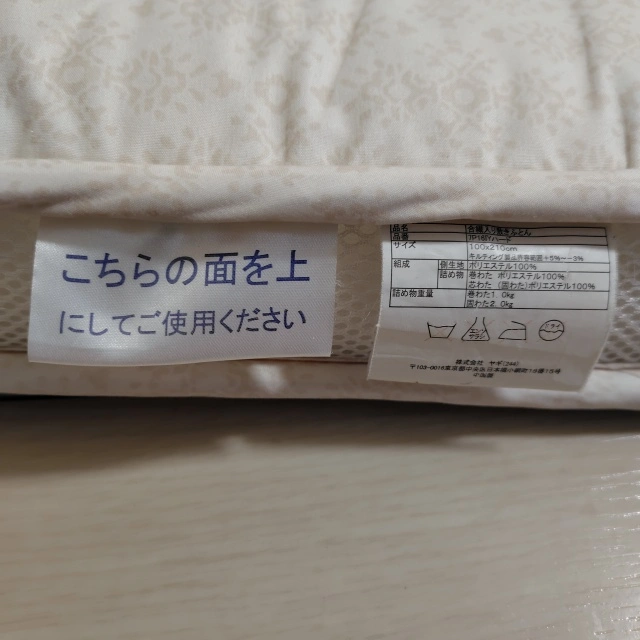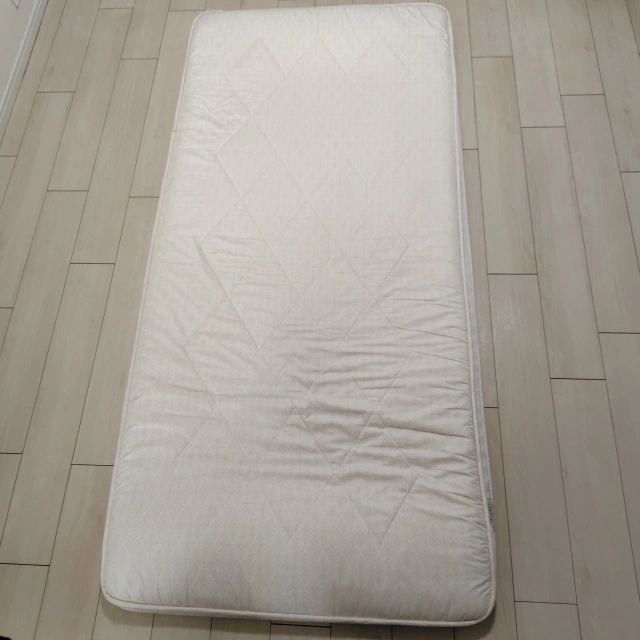 (本商品は他の サイトにも出品しておりますので、売り切れの際はご容赦ください) 【コメント】 敷布団でサイズは長さ約210cm、幅約100cmです。 スレや汚れは少なくキレイなものですが、経年的な圧縮によりやや薄くなっております。7枚目の写真のように持ち運び用/保管用のケースもお付けしたいと思います。 敷布団の重ね用ですとか、防音材としてまだまだお使い頂けるかと思いますので、お安くお讓りしたいと思います。 「中古品」としてご理解とご了承を頂ける方にお讓りしたいと思います。 神経質な方や完璧をお求めの方はご遠慮ください。 なお、お引渡しの場所は取り敢えず、川崎駅にしておりますが、ある程度の範囲でしたら、お車でのお届けもできますので、お気軽にご相談ください。