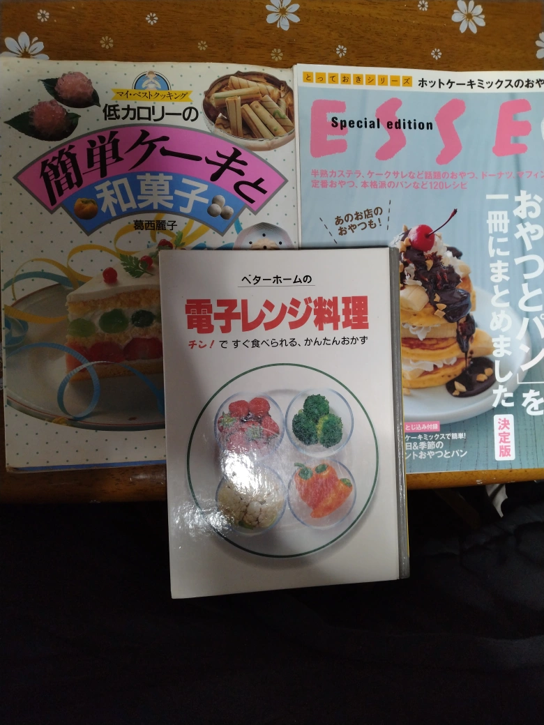 料理本3冊セットです ・マイ・ベストクッキング 低カロリーの簡単ケーキと和菓子 ・ESSE Special Edition ホットケーキミックスのおやつレシピ ・ベターホームの電子レンジ料理 中古品であることご了承ください