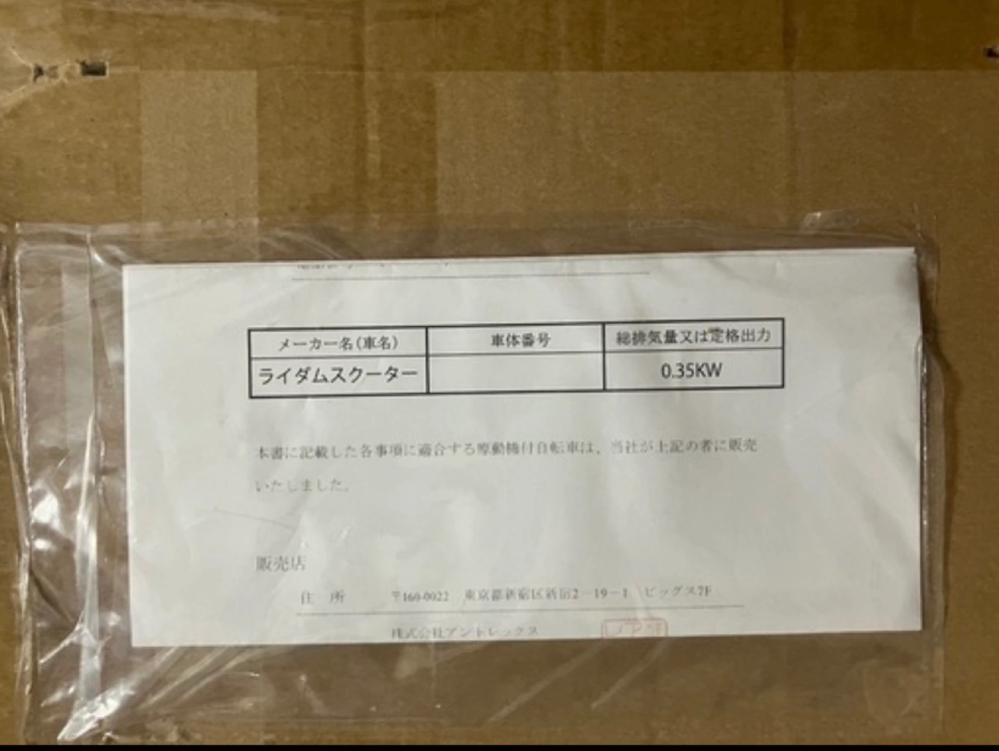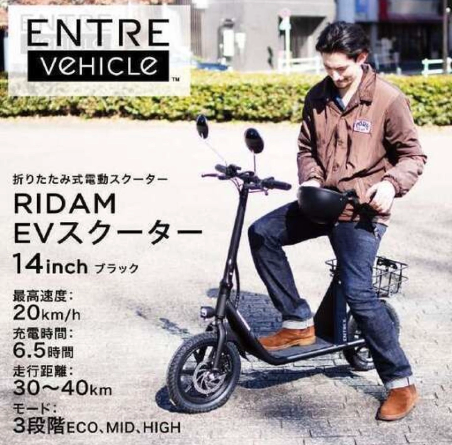 14インチのRIDAM EVスクーターは、最高速度20km/hで30-40kmの走行が可能。前面バスケットとテールライト付きで便利。 引越しのためお譲りします。一度もダンボールから出しておりません。 証明書などは箱に貼ってあります。 ナンバーと自賠責取得で公道走行可能な車種です。※ヘルメットは必要です。 【公道走行可能】 街乗りやレジャーに最適!折りたたみ可能な電動スクーター。 14インチタイヤと広いデッキで、安全で快適なライディングをお楽しみ頂けます。 ■スペック サイズ:W132×D45×H127cm 折りたたみサイズ:W132×D26×H60cm タイヤ:14インチ 重量:19kg 充電時間:5時間 重量:21kg シート高さ:地面より65-85cm 最高速度:20Km/h 走行距離:30~40km バッテリー:リチウム(36V/10AH) モード:ECO、MID、HIGHの3段階 ライト:フロント、リア(LED) ブレーキ:ディスクブレーキ ◎サイドミラー、ウィンカー、クラクション搭載 ※走行距離は気温や道路環境など、使用状況により異なる場合がございます。 ※使用時にはヘルメットを装着する必要があります。 ※ナンバープレート必須(本製品は原動機付自転車に分類されます) ※運転免許証必須(普通自動車免許もしくは原付免許) ※ディスプレイ部分、バッテリーは長時間水に浸かると故障する恐れがございますのでご注意ください。 ※乗車定員は運転者のみの1人です。 ※修理は有償にて受け付けます。 ≪道路交通法上の取り扱い≫ 本車両「EVスクーター」は道路交通法上、原動機付自転車に分類されます。従って運転に際しては免許証の携帯、ヘルメットの装着が必要です。 本車両は第一種原動機付自転車です。公道を走行するに当たっては、居住地の役所(市役所、区役所等)でナンバープレートを取得する必要があります。 原動機付自転車として必要な法令遵守をお願いします。 サイズ:W132×D45×H127cm 素材:アルミニウム合金、スチール 原産国:中国 ご覧いただきありがとうございます。
