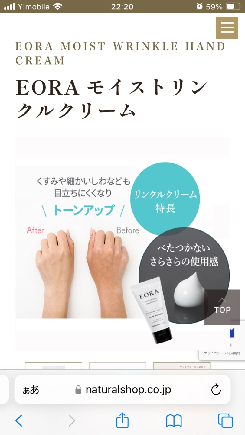 手肌を美しく魅せてくれる!超おススメ◎ 手モデル✨の友人も大絶賛!! ↓ ↓ ↓ ●エオラ モイスト リンクル クリーム 50g 一塗りで小じわ、くすみを瞬間カバー*¹ トーンアップクリーム アルブチン高 濃度配合 指先-5歳肌クリーム。 これからの季節に是非ご活用ください。 美しい手に近づきます。 さらさらの使用感 塗るだけで小じわやくすみを瞬間カバー マイクロパウダーとホワイトパウダーで、気になるしわの溝や毛穴を瞬間カバーするハンドクリーム。 >>手肌の年齢悩みにアプローチするエイジング成分も配合<< 手だけではなく、年齢肌が気になるお首やお顔にもご利用いただけます。 こまめにご使用いただくことで手肌のお悩みにもアプローチし、自肌力(自らの力で肌を美しくしようとする力)を高めます。 ひと塗りでくすみや細かいしわなども目立ちにくくなります。 べたつかないさらさらの使用感で、クリームのべたつきが苦手な方にもおすすめです。※注意:シリコン系の成分が配合されているため、あまりこすり過ぎないよう肌になじませてください。 無香料。