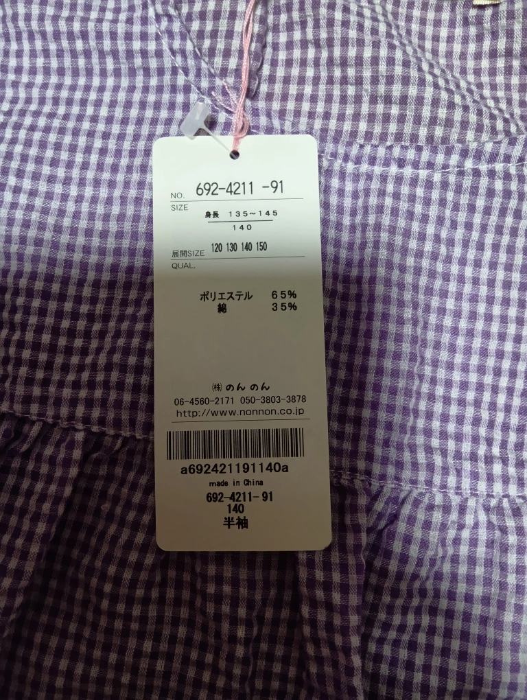 新品タグ付き、アイアムマリリンのトップス140です。紫色のチェックです。 練馬駅前またはイオン板橋、光が丘IMAでの取引を希望しております。