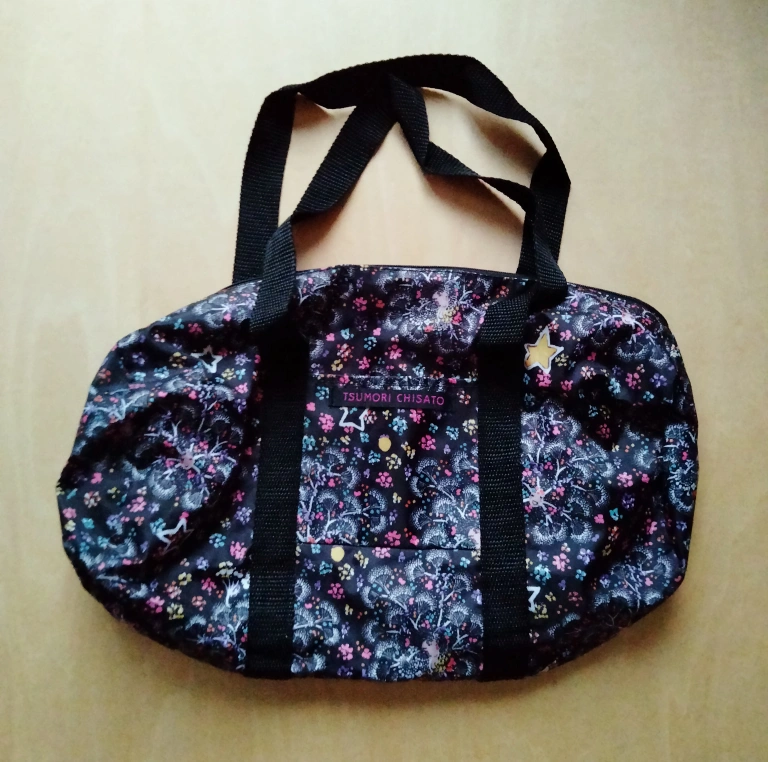 ツモリチサトのボストンバッグです ・ブランド:ツモリチサト ・色:黒、柄 ・状態:新品 サイズ 横幅30 縦25 マチ18cm 雑誌の付録でもったいなくて保管していました。 ジム ヨガ ピラティス 荷物入れにも