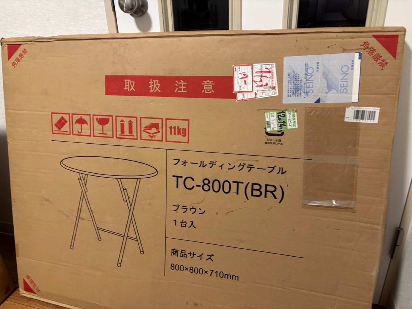 未開封、未使用ですが、自宅保管ですので、神経質な方は、ご遠慮願います。 ブラウンの丸型折りたたみテーブルです。 - 形状: 丸型 - 色: ブラウン - モデル名: TC-800T(BR) - サイズ: φ800x H710 折り畳み時:W800×D50×H1025 材質 ◇天板:MDF(18mm厚)、塩ビシート張り(木目柄) ◇フレーム:Φ22.2mm、スチール粉体塗装(ブラック) よろしくお願いします。