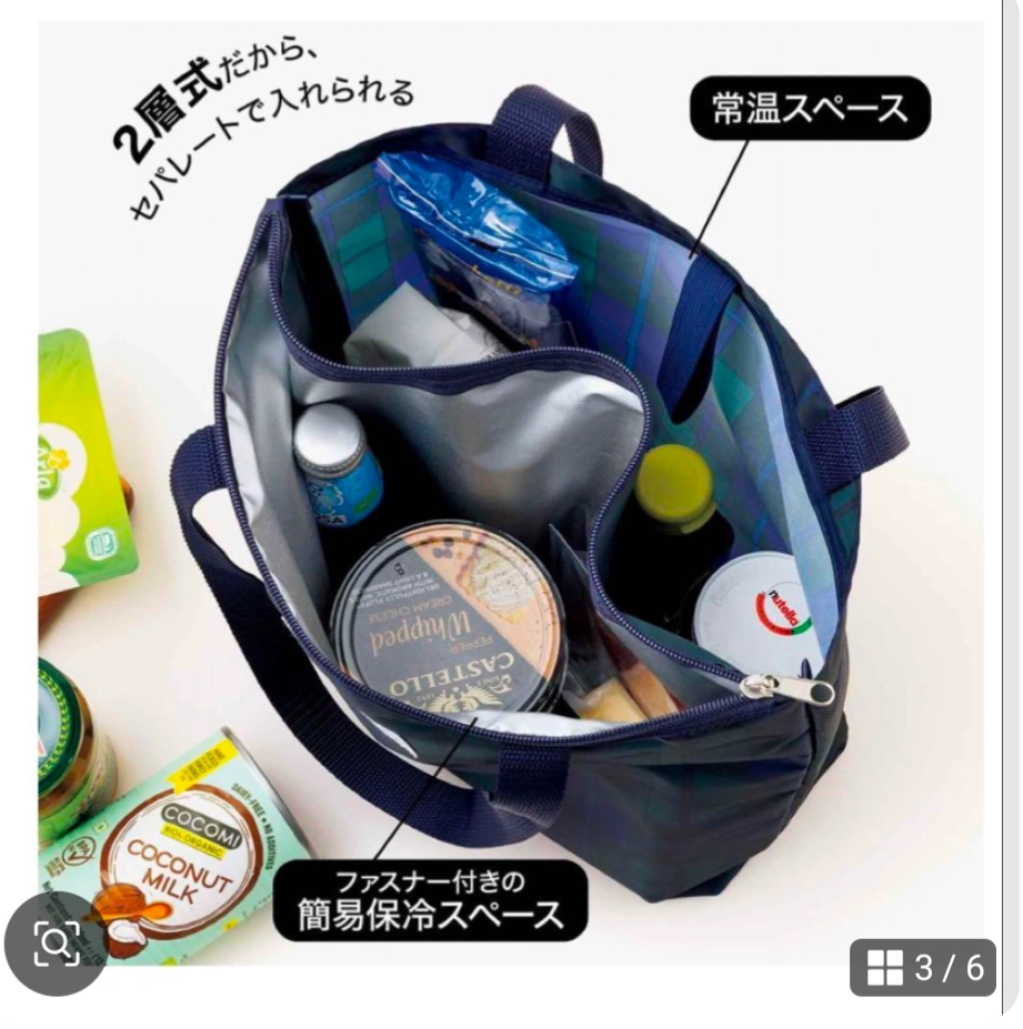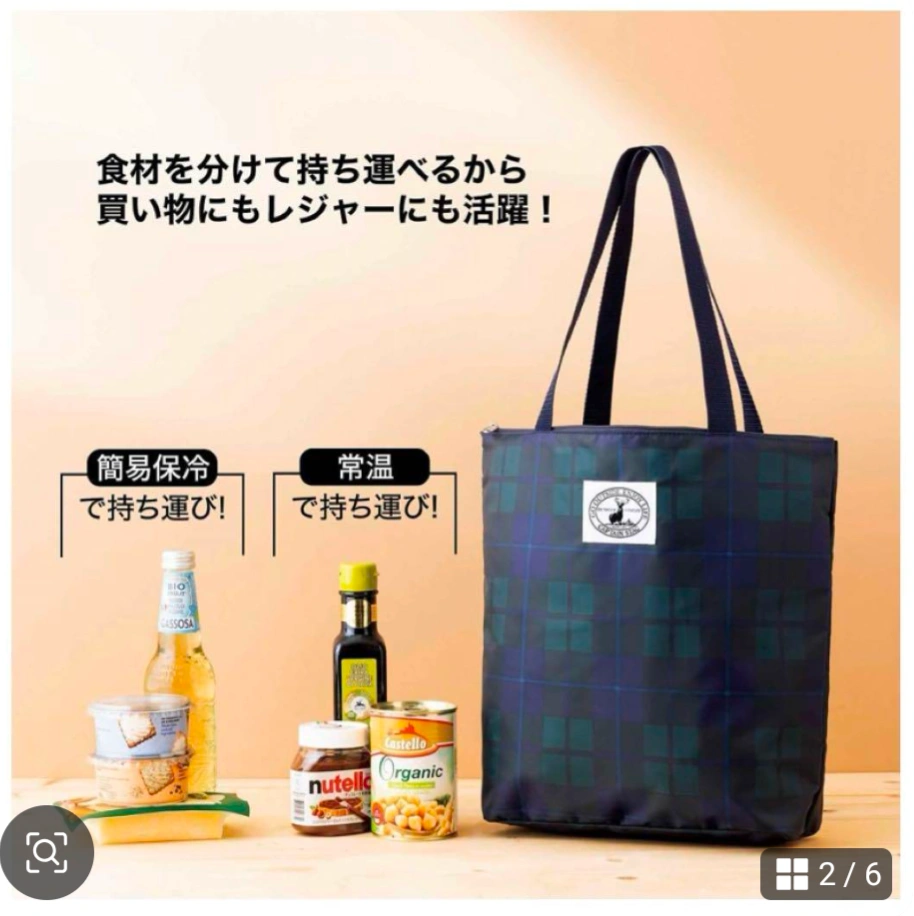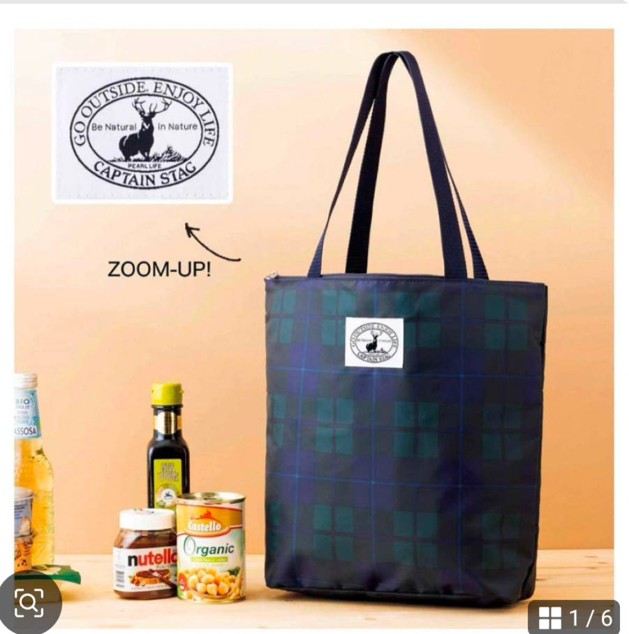 サイズ(約):高さ32×幅(上部36/底部25)×マチ10cm 持ち手の長さ56cm ※バッグ以外は付録に含まれません。 ※総柄のため柄の位置は写真と異なります。 ※デザインは変更になる場合があります。 ※この製品は保冷を目的としたものであり、鮮度や品質を保持するものではありません。 ………………………………………… 常温と簡易保冷を分けられる2層式エコバッグ アウトドアブランド「キャプテンスタッグ」とコラボした、毎日の買い物に役立つエコバッグ。 簡易保冷スペースと常温スペースに分かれた仕様で、温度変化に気を使いたいものと、常温でOKなものを分けて収納することができます。 小さくたためるので持ち運びにも便利。外側には撥水加工が施されており、デイリーにはもちろん、レジャーやアウトドアシーンでも活躍します。 こちらは未開封です。中身の確認はしておりませんのでご了承ください。 雑誌の付録になりますので商品の初期不良には対応致しかねますのでご了承頂ける方のみご購入をお願いいたします。 大量の在庫管理のため、外側のビニール袋にマジックで、◯年◯月◯雑誌と記入してあります。 お受け取り場所は、美容室(1F路面店)になっておりますので、お気軽にお越しください。 火曜日以外で10時〜20時はお取引可能な時間帯です。(月に6〜7日(平日) イレギュラーで担当不在な場合があります) ディープオーガル(美容室)