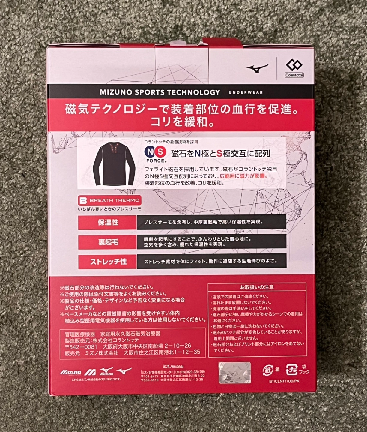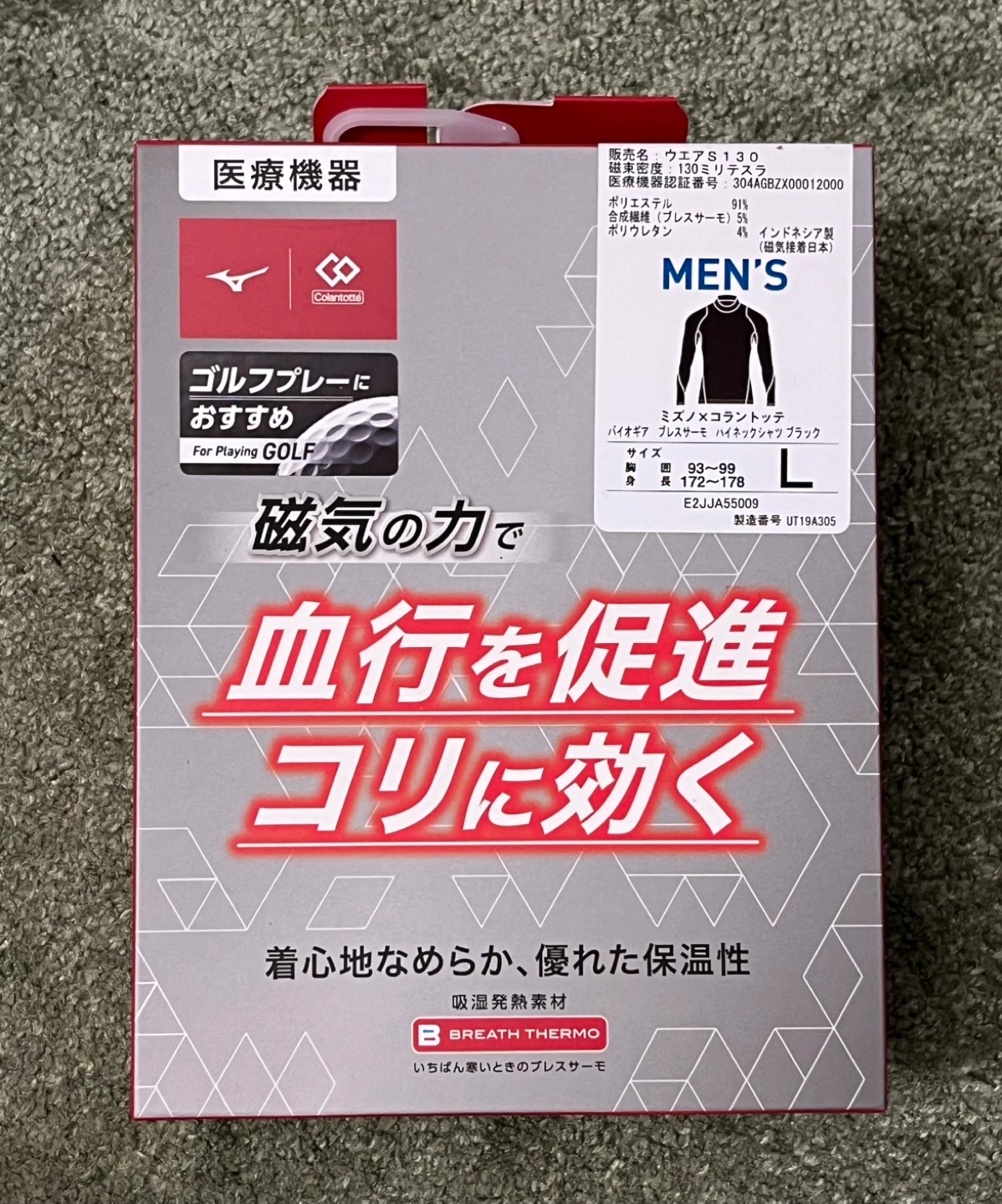 ⭐️他にも新品未使用品を出品していますので、ぜひ一度ご覧ください⭐️ 【新品未使用】 ゴルフ用アンダーウエア です。 ・ブラック ・Lサイズ ・Mizuno ミズノ ・Colantotte コラントッテ ・10,980円(Amazon/2024年12月現在) 以下、商品説明(抜粋)です。 【素材構成】ポリエステル91%、合成繊維(ブレスサーモ)5%、ポリウレタン4% 【取り扱い案内】手洗いのみ 【ネックスタイル】ハイネック ✅ 磁気の力で血行促進、つらい肩こりを改善。 ✅着脱しやすいストレッチ生地を使用。暖かく、ソフトで快適な着心地。冬のゴルフを快適に。 ✅汗のニオイの原因菌を減少させ、ゴルフプレイ中に汗をかいても安心です。消臭効果でアンモニアによる不快臭を減らします。 ✅制菌加工により、部屋干しで発生するニオイの原因を減少させます。 ✅ミズノとコラントッテのコラボアイテム!磁器の力で血行を促進し、つらい肩こりを改善します。暖かくソフトで快適な着心地で、冬のゴルフ を快適に。