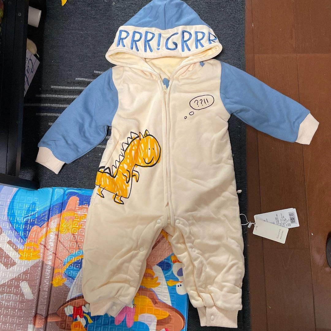 【新品未使用】フリース素材恐竜柄アウターロンパース