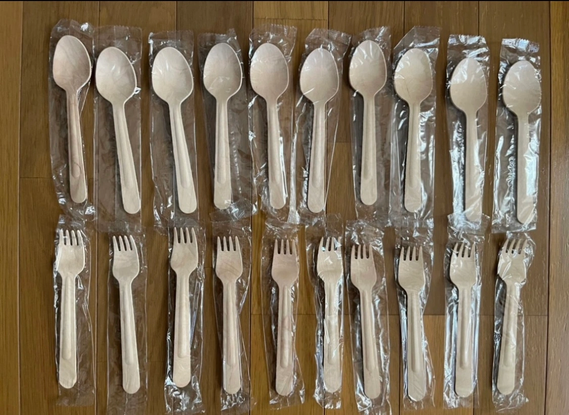 木製スプーン(個装10本) 木製フォーク(個装10本) サイズ:長さ約16.5cm 素材:木製・白木・ナチュラル こちら河童橋道具街にて購入し、未使用のまま、保管していた品を出品いたします。個装なので衛生的。アウトドアや防災グッズとして使用できるかと思います。 ★目立ったキズや汚れなどはありませんが、 自然素材ですので個体差があります。特に気になる方は返品等の対応は致しかねますので、どうかご了承の上ご購入ください。