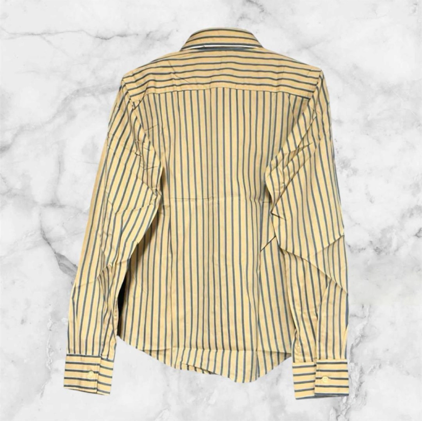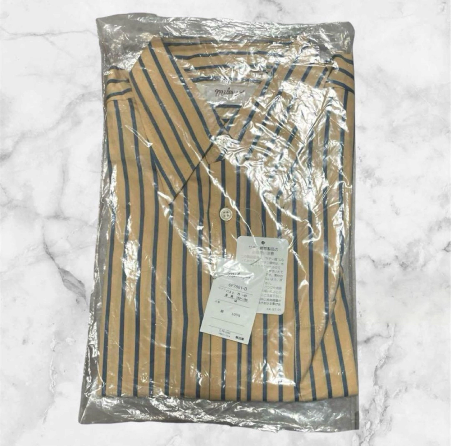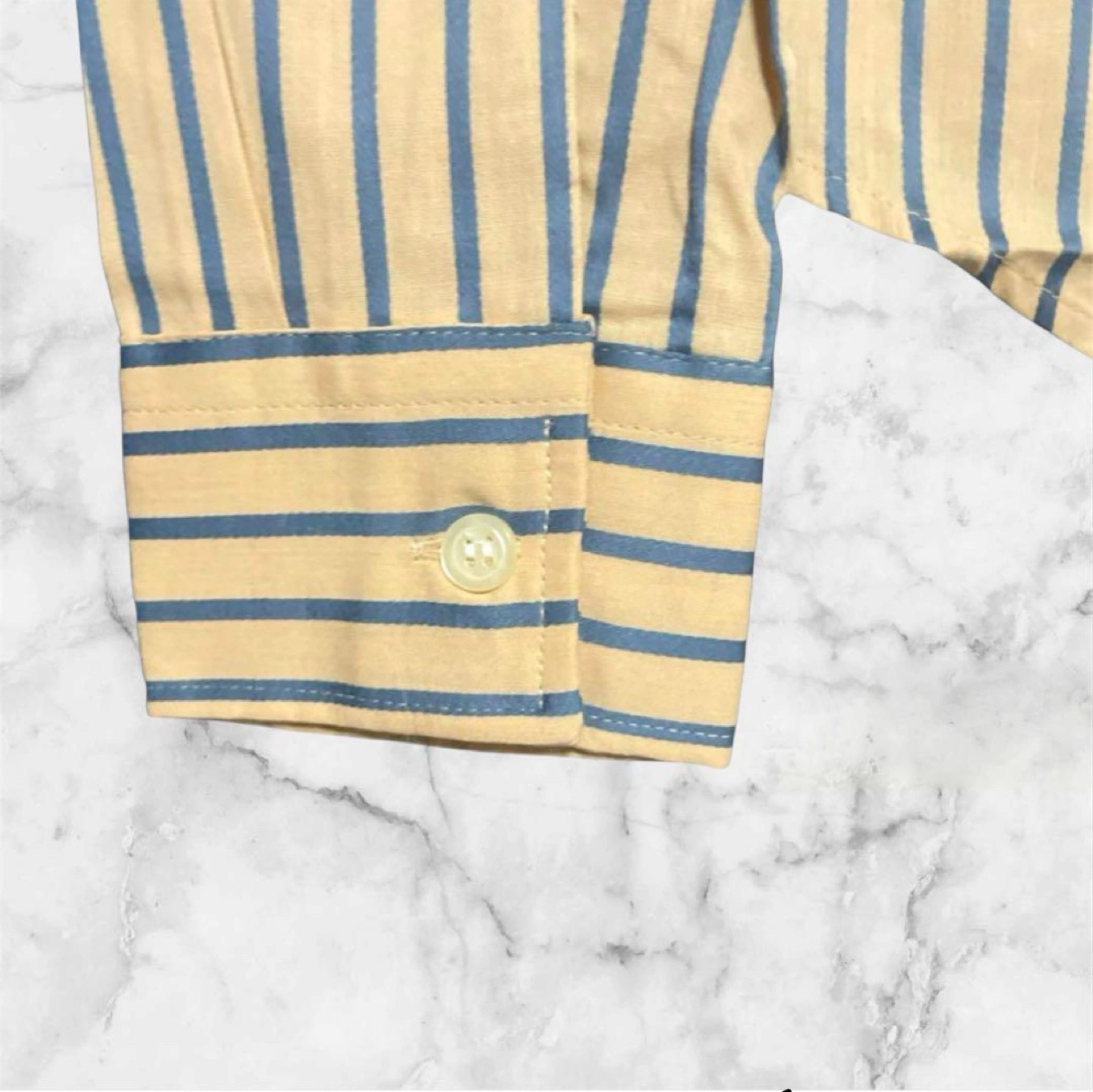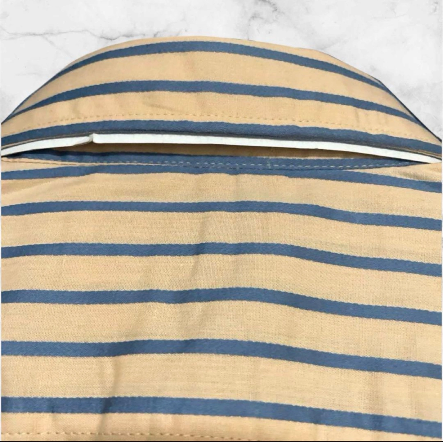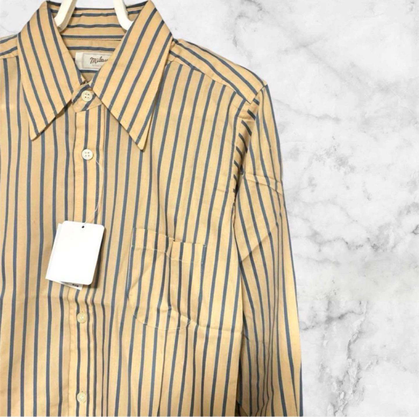 miltargue ストライプシャツ ブラウス ☆新品未使用 タグ付き ☆襟…型紙あり ☆柄…ストライプ ☆袖丈···長袖 ☆カラー…オレンジ×ブルー ☆サイズ…M バスト…79〜87 身長…152〜160 肩幅···39cm 身幅···42cm 袖丈···59cm 着丈···61cm ※採寸上、多少の誤差がありますのでご了承ください 写真を撮る為に袋から出しましたが、袋に入 れたまま保管 他サイトでも出品中です。 他で売れた場合、急に削除しますので、ご了承ください