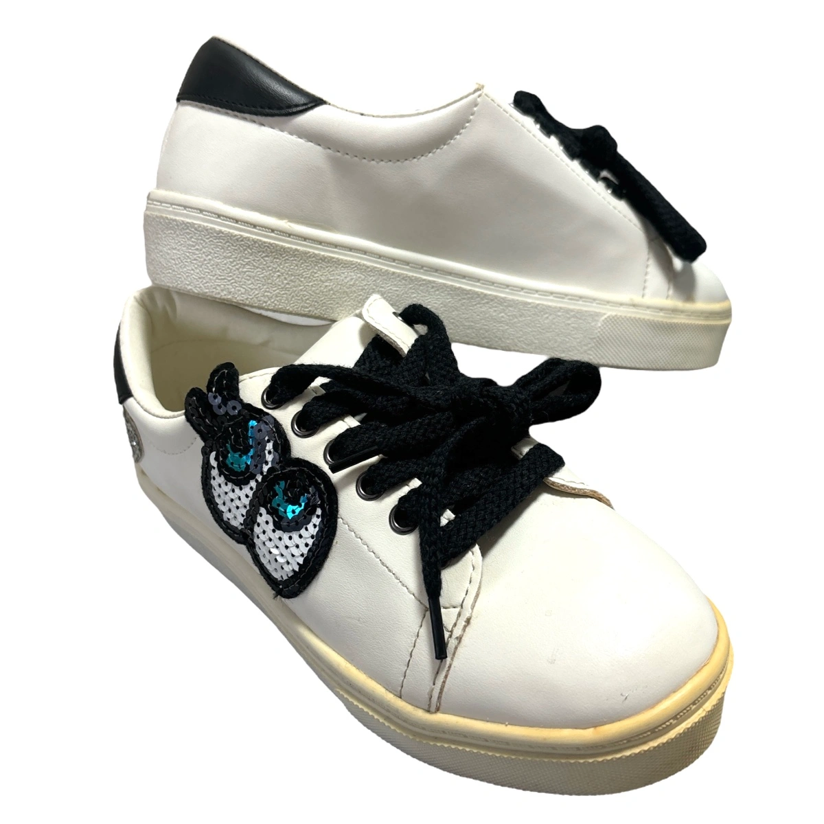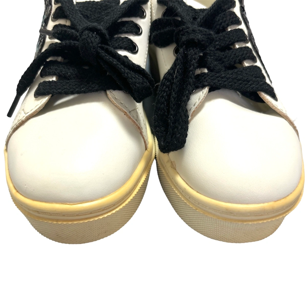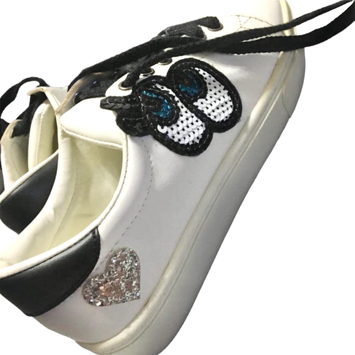 RenewalStar ポイント ワッペンスニーカー シューズ 靴 ☆新品未使用 ☆レディース ☆カラー…ホワイト ☆サイズ…M スパンコールのアイデザイン、かかとのハートがとってもキュートな個性派スニーカー。 シンプルなデザインなので、どんなスタイルにも合わせやすい。 大人のハズしアイテムとしても◎。 韓国で去年購入 ラスト一点展示品購入いたしました! 一度購入前に試し履きしましたが、外では履いてません。 購入時に箱は付いてませんでした。 経年劣化による黄ばみが、つま先部分にありますが新品未使用です! ご理解のうえご購入ください。 他サイトでも出品中です。 他で売れた場合、急に削除しますので、ご了承ください