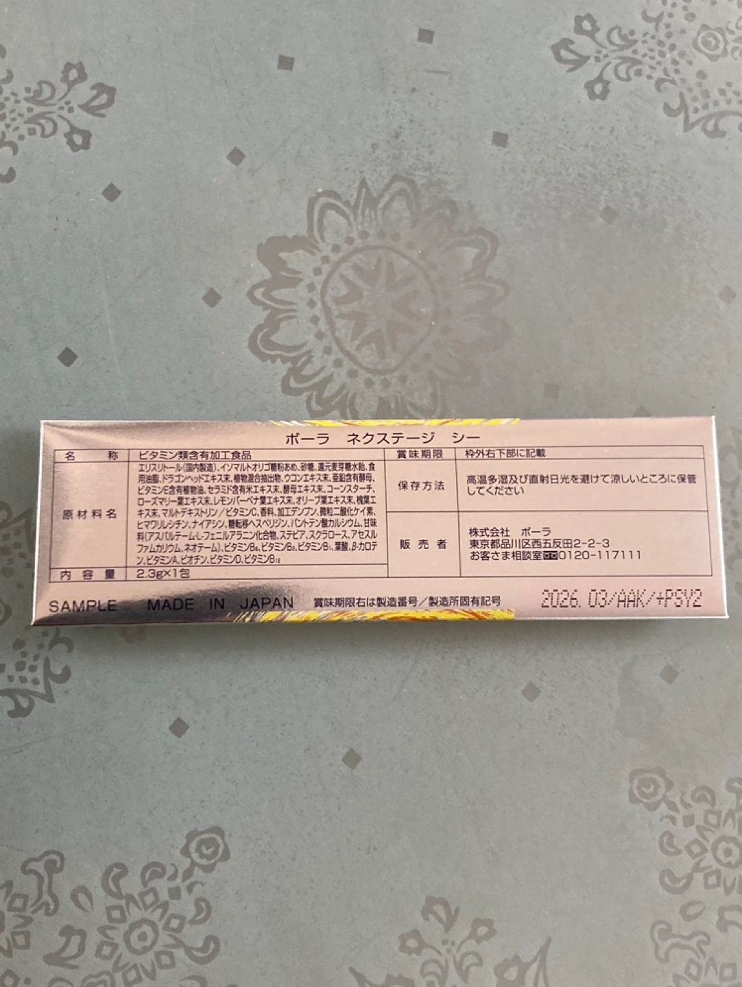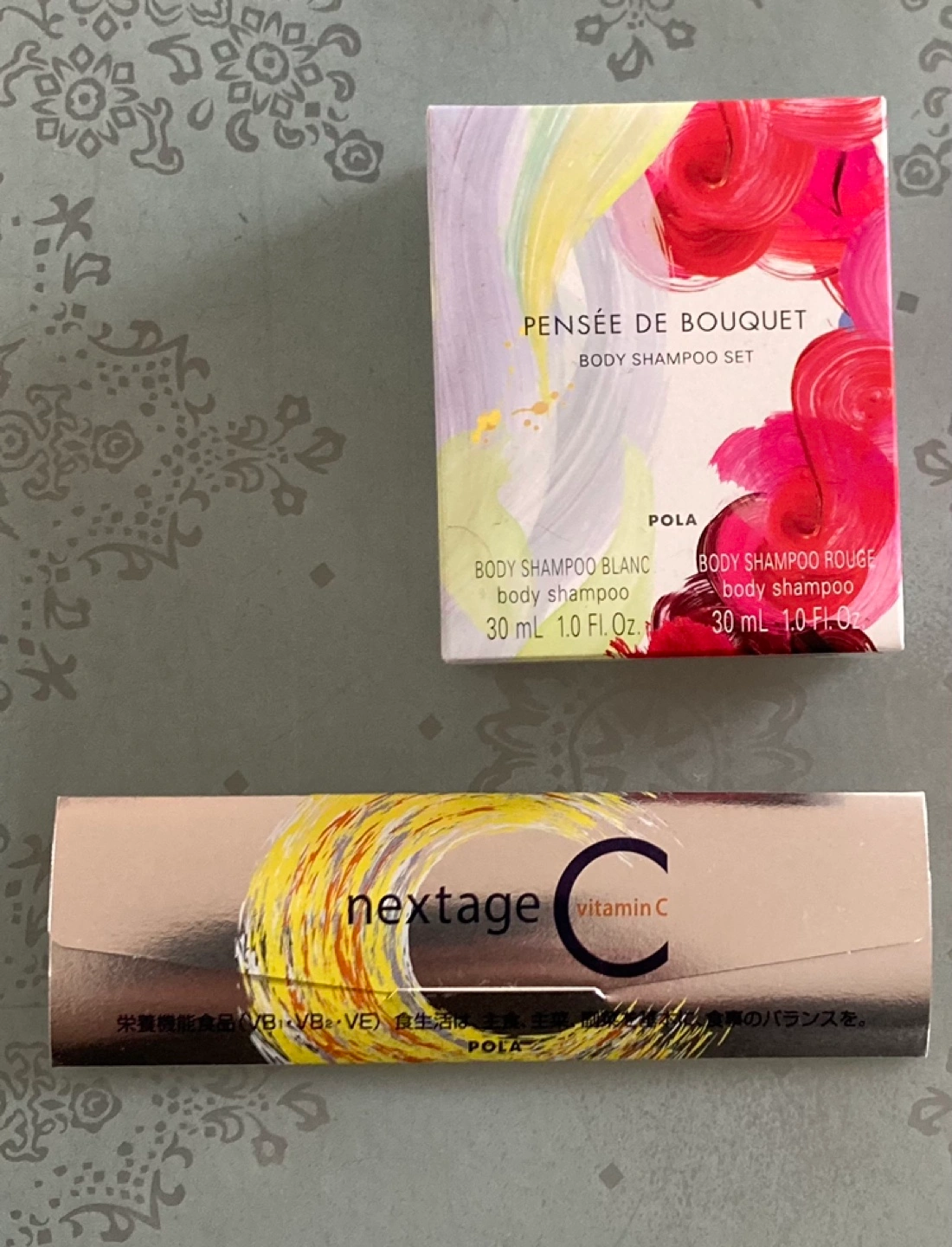 ★新品未開封品★POLAボディシャンプー & nextageC試供品 以下POLA商品①②のセット販売です♪ ① POLA POLA PENSÉE DE BOUQUET BODY SHAMPOO SET ボディシャンプーブラン 30mL ボディシャンプールージュ 30mL 新品未開封品 ②POLAポーラのnextage Cネクステージ シー 2.3g試供品 ビタミン類含有加工食品 栄養機能食品(VB1,VB2,VE) スッキリ,クリアな毎日をサポートする美容健康食品。12種類のビタミン他ビタミンCの吸収をサポートするドラゴンヘッドエキスを配合。 賞味期限2026.3月 自宅保管品にて多少の畳じわありますこと、発送時は圧縮梱包の可能性ありますこと、また、複数のフリマサイトでも出品、売切れの際は突然の削除もありますこと、予めご容赦くださいませm(_ _)m