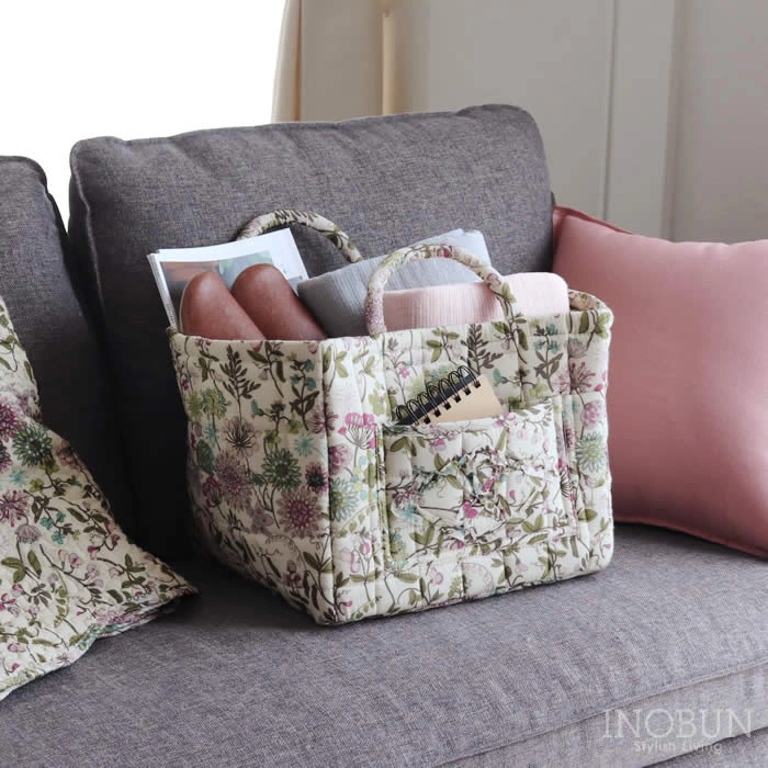 クッション性があり、ふわふわ気持ち良く繊細なデザインが美しいキルトアイテムです。 新品未開封で、掲載の写真は通販の商品を載せています。 ●サイズ:約33 x 27 x 26 cm ●持ち手高さ:9.5 cm ●片側外ポケット:W19.5 x H12.5 cm ●内側左右に紐通しループ付き ●素材:表地 綿100%、中身 ウレタン100%、裏地 ポリエステル100% お受け渡し場所は高井戸駅、浜田山駅、八幡山駅を希望しますが、近場であればご相談に応じます。
