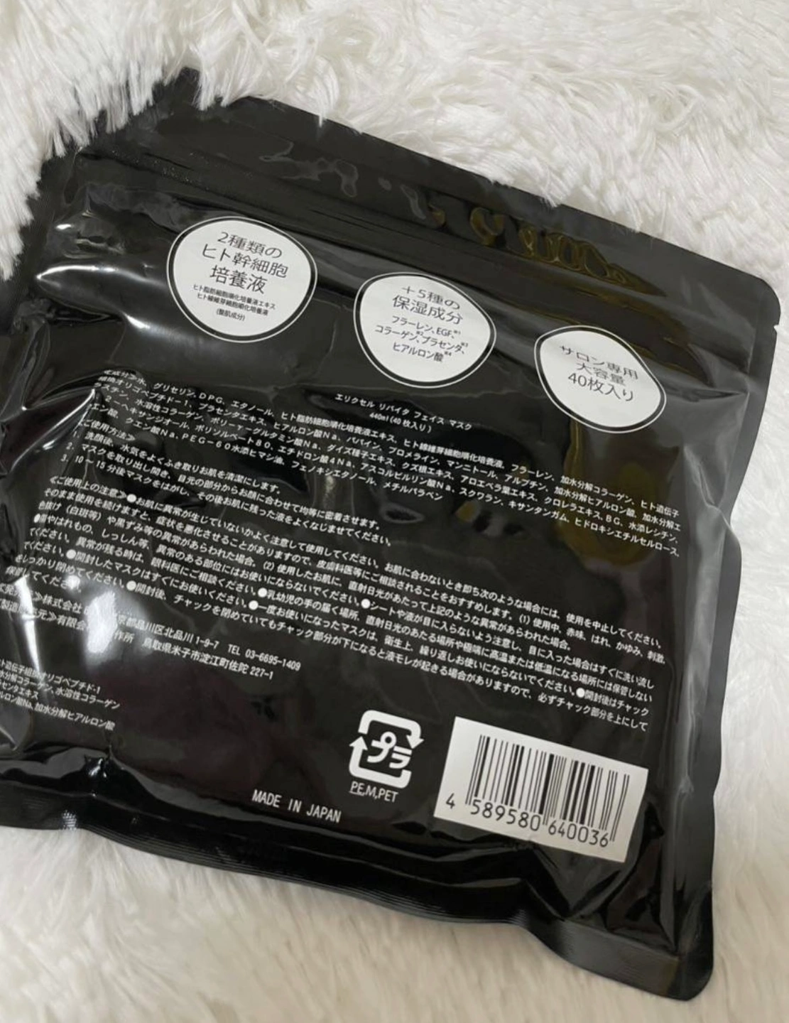 サロン専売品(40枚入り) ヒト幹細胞培養液配合 プラセンタ EGF コラーゲン ヒアルロン酸 安心安全の国内工場で製造 お肌に直接つけるものだからこそ、安全性は最大限に配慮しています。 安くて不安定な国外の工場なのではなく、管理もでき、細かな作業もしっかりこなせる日本国内の工場にて製造しています。 詳細 顔の中心ラインに合わせるようにはりつけます。 約10〜15分後、お肌に残った美容液はやさしくなじませてください。 原材料・成分 : 水、グリセリン、DPG、エタノール、ヒト脂肪細胞順化培養エキス、ヒト線維細胞順化培養液、フラーレン、加水分解コラーゲン、ヒト遺伝子組換オリゴペプチド-1、プラセンタエキス、ヒアルロン酸Na、パパイン、ブロメライン、マンニトール、アルブチン、加水分解ヒアルロン酸、加水分解エラチン、水溶性コラーゲン、ポリ-γ-グルタミン酸合成Na、大豆種子エキス、クズ根エキス、アロエベラ葉エキス、クロレラエキス、BG、水添レシチン、1,2-ヘキサンジオール、ポリソルベート80、エチドロン酸4Na、アスコルビルリン酸Na、スクワラン、キサンタンガム、ヒドロキシエチルセルロース、クエン酸、クエン酸Na、PEG-60水添ヒマシ油、フェノキシエタノール、メチルパラベン 使用方法 : 1.洗顔後、水気をよくふき取りお肌を清潔にします。 2.マスクを取り出し開き、目元の部分からお顔に合わせて均等に密着させます。 3.10~15分後マスクをはがし、その後お肌に残った液をよくなじませてください。