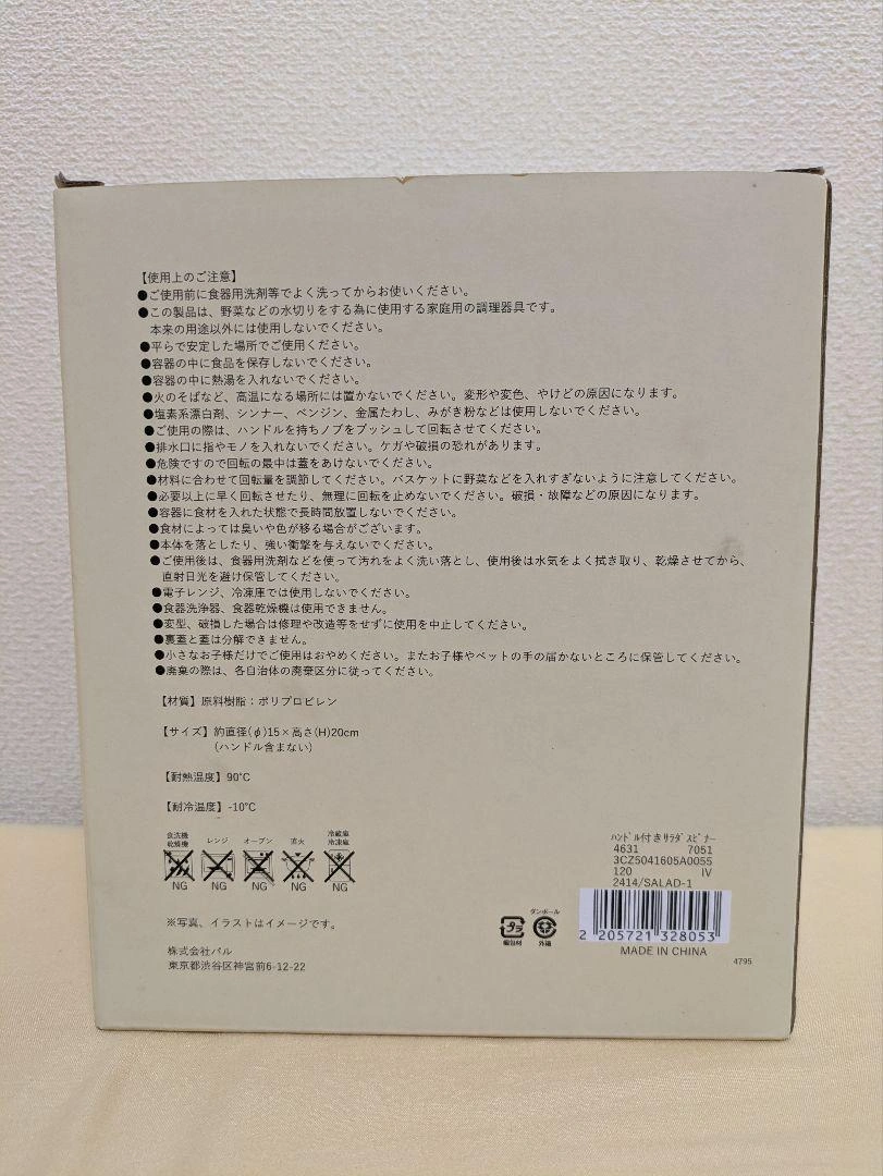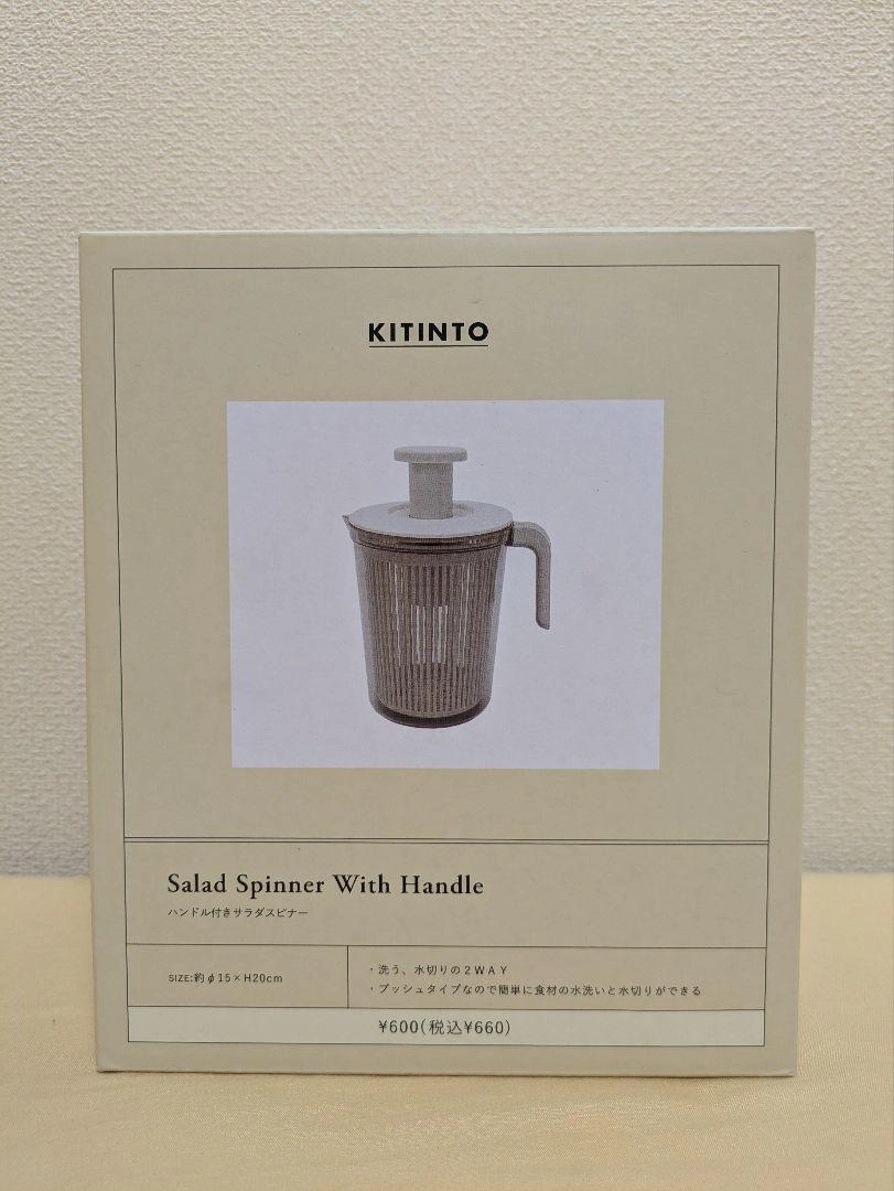 ハンドル付きで使いやすいサラダスピナーです。 ビンゴ大会の景品で頂き、自宅保管していたものです。 水切りは既に持っているため出品します。 - ブランド: KITINTO - 商品名: Salad Spinner With Handle - 価格: ¥600 - 使用方法: ハンドル付きで簡単に水切りができるサラダスピナー - 注意事項: 耐熱温度:80℃ ご覧いただきありがとうございます。 ご希望の方はお気軽にご連絡ください。