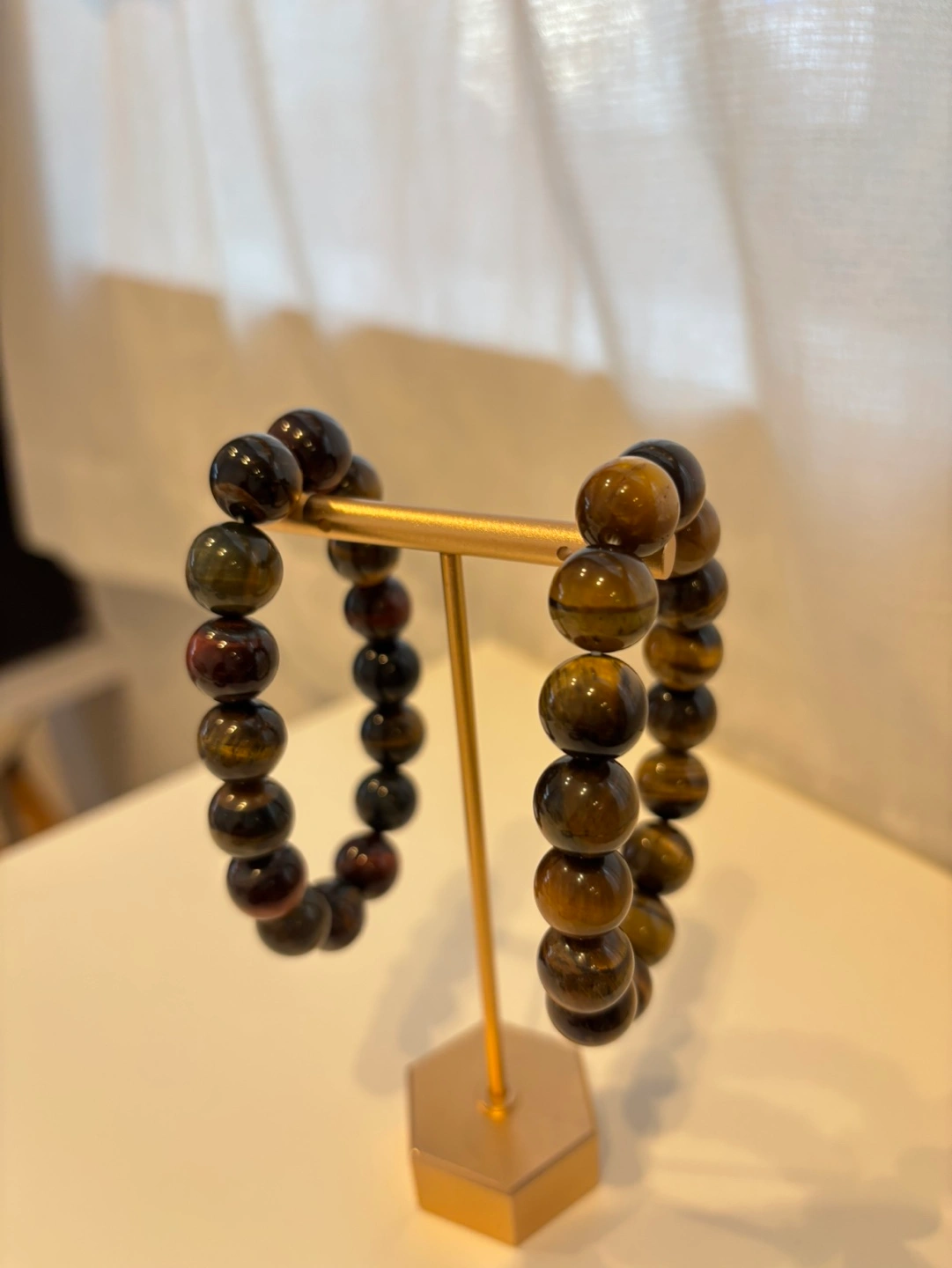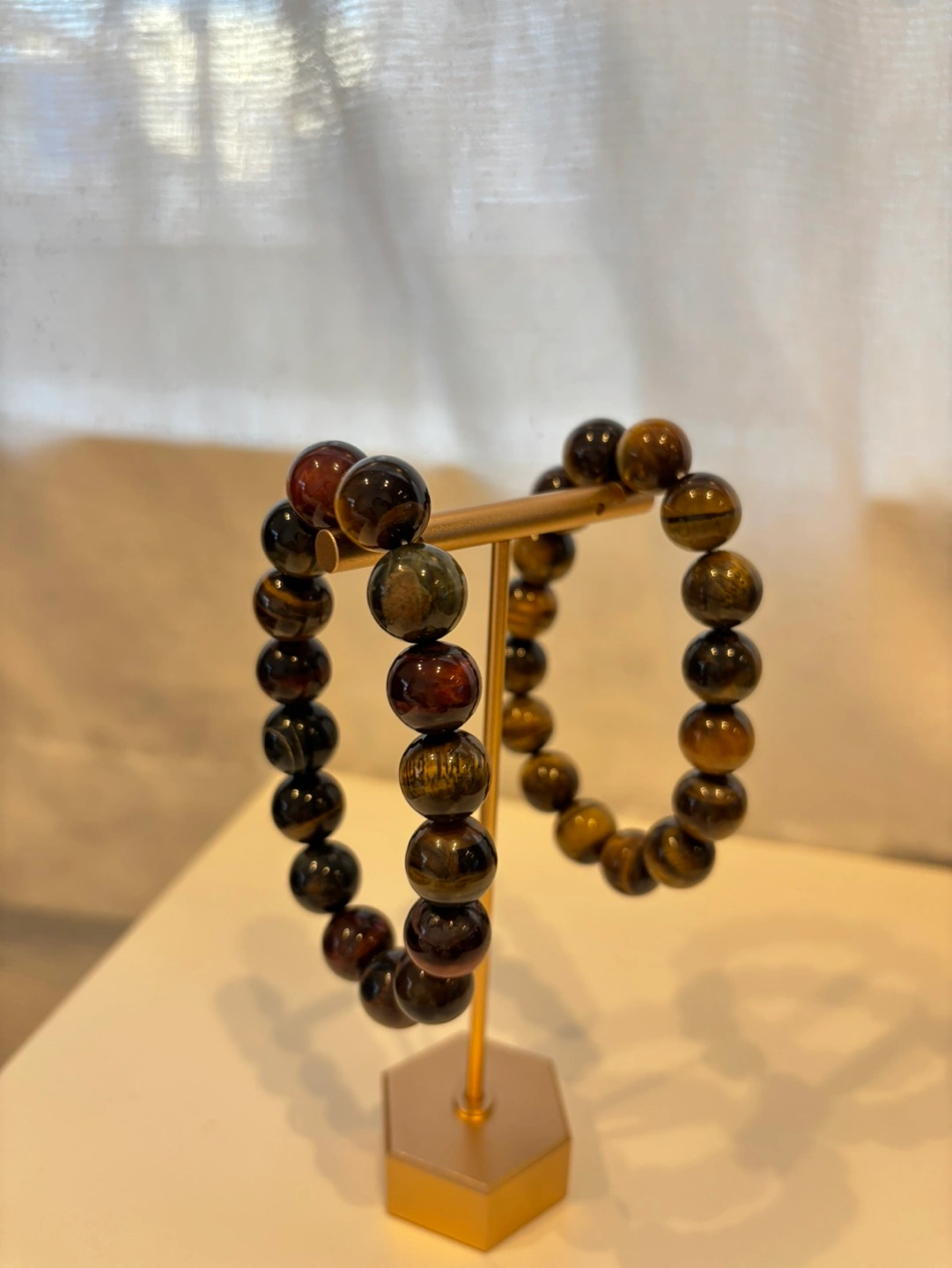 こちら1つのお値段です。 自宅付近まで来て頂ける場合は、実物を見て購入をお考えください🔮 なるべくわかりやすいとお写真を載せる努力いたします♡ 父が扱っていた天然石、ブレスレットです。 質は良いと思います。海外での買い付けと国内卸売から購入したものが混ざっています。 検品したところ、ゴムは固めでしっかりしていますが年数が経っているので長持ちする保証ができません🙇♂️ その点を含め、【未使用に近い】にしています。 天然石内側半径5〜5.5cm、女性は余裕がある感じで付けられます。男性の場合ピッタリ、またはゴムが伸びる感じになると思います。