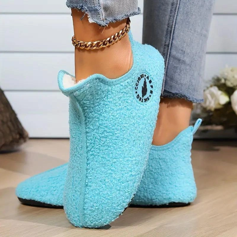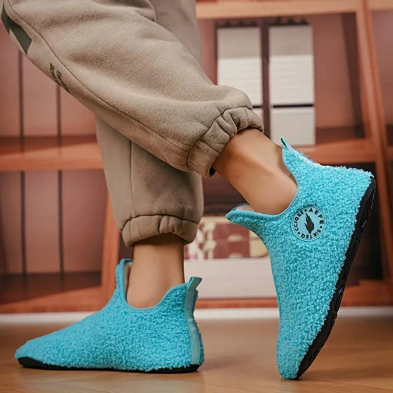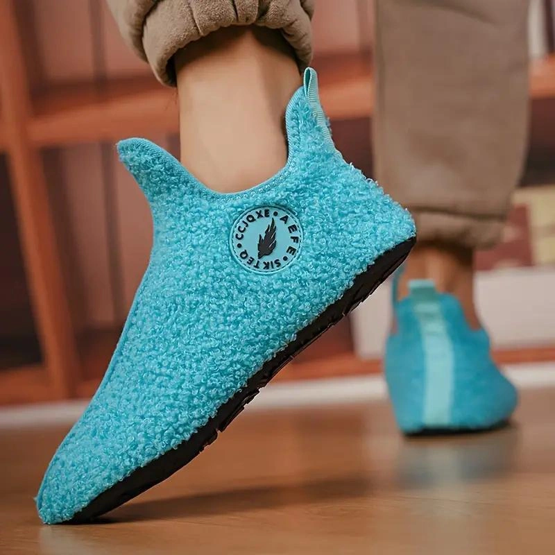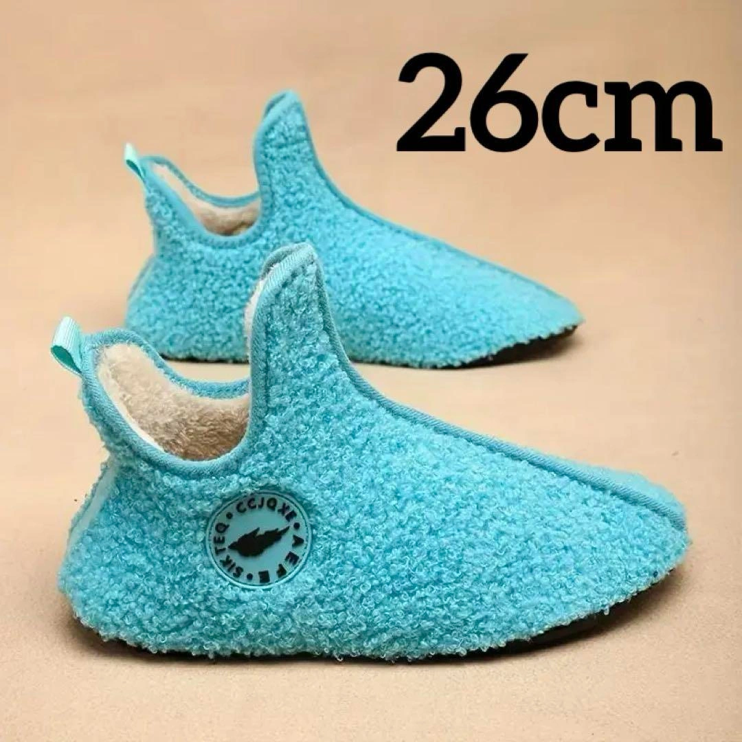 【新品】【ブルー 26㎝】ルームシューズ ボア生地 ゴム底 丸洗いOK!