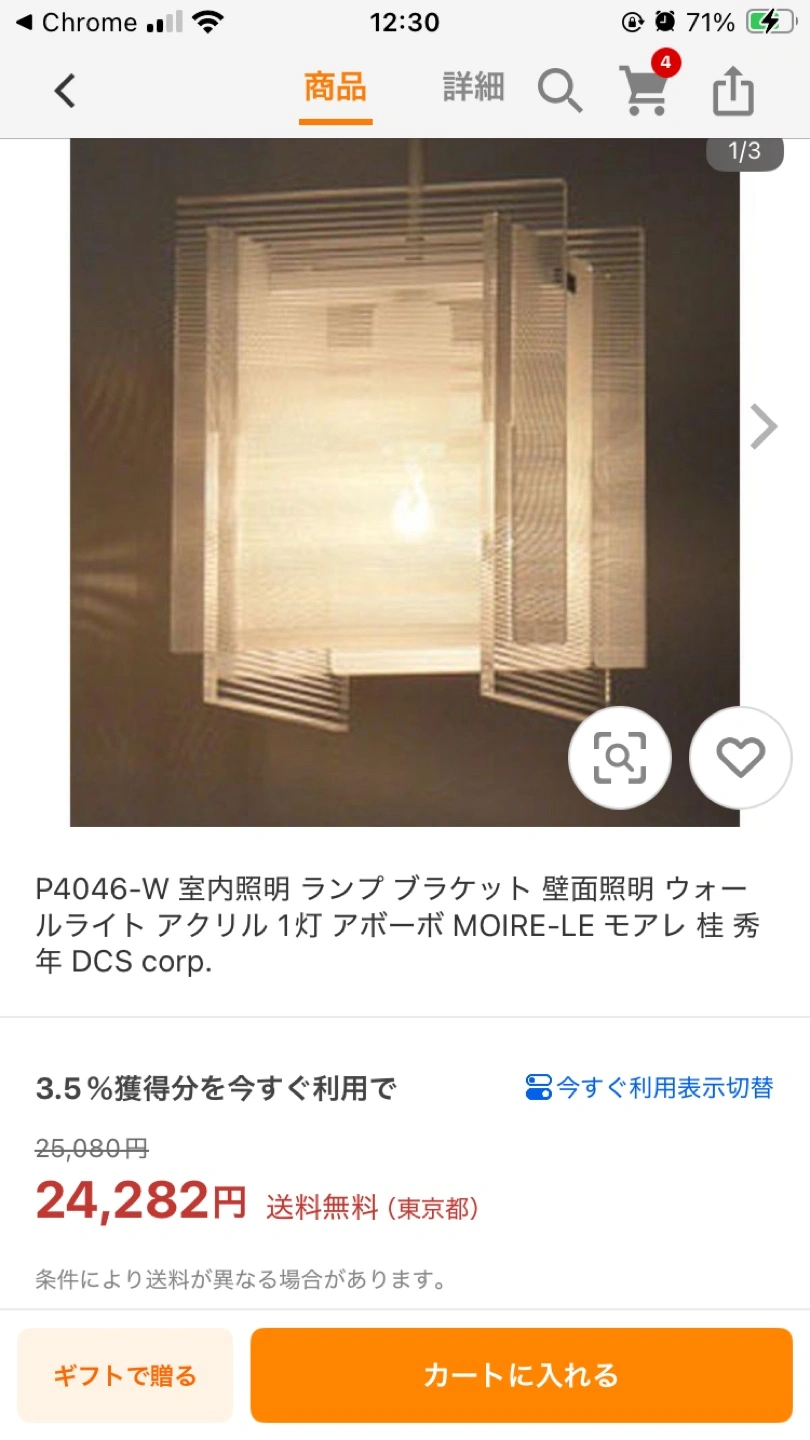 ◾️販売経緯 手持ちの電球がE26で使えないためお譲りします。 未使用品ですが、動作確認と撮影のため通電しています。 ■デザイナー / 桂 秀年 空に浮遊する、透明感のあるモアレ模様の光が空間全体に幻想的な雰囲気を醸し出します。 4枚のパネルで形づくられたシンプルな形状はあらゆる空間にマッチするデザインです。 ■素材と仕様 ワイヤー長さ調節式:天井に穴などは開けずに簡単装着が可能です。 素材:アクリル シルクスクリーン印刷 鋼白色塗装仕上 電球 :E17 S35 ミニランプ クリア 40W×1 電源:引っ掛けシーリング ■サイズ W15 D15 H19cm コード1.5m 重量1.2kg ■その他 他サイトでも出品中のため、早めに売れる方を優先させて頂きます。 #ジャパンディ #ペンダントライト #シーリングライト #桂秀年