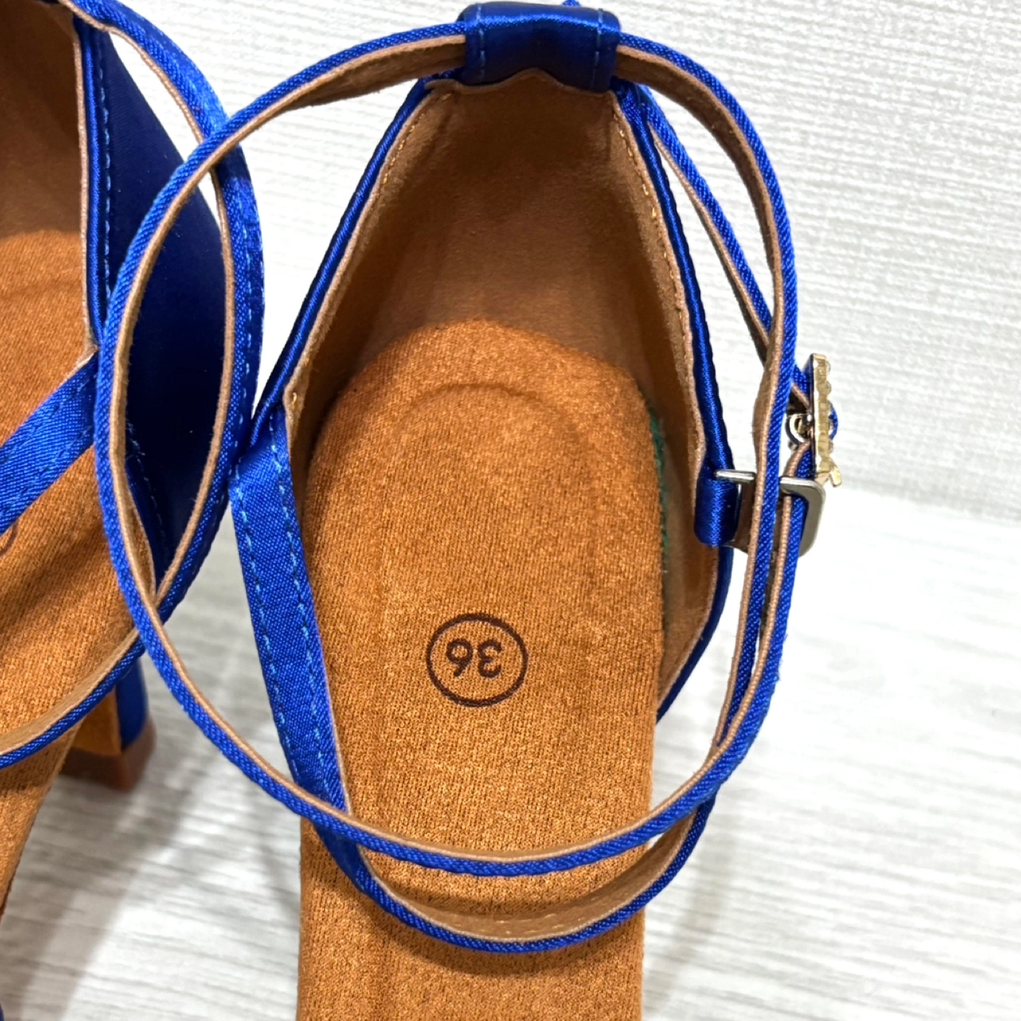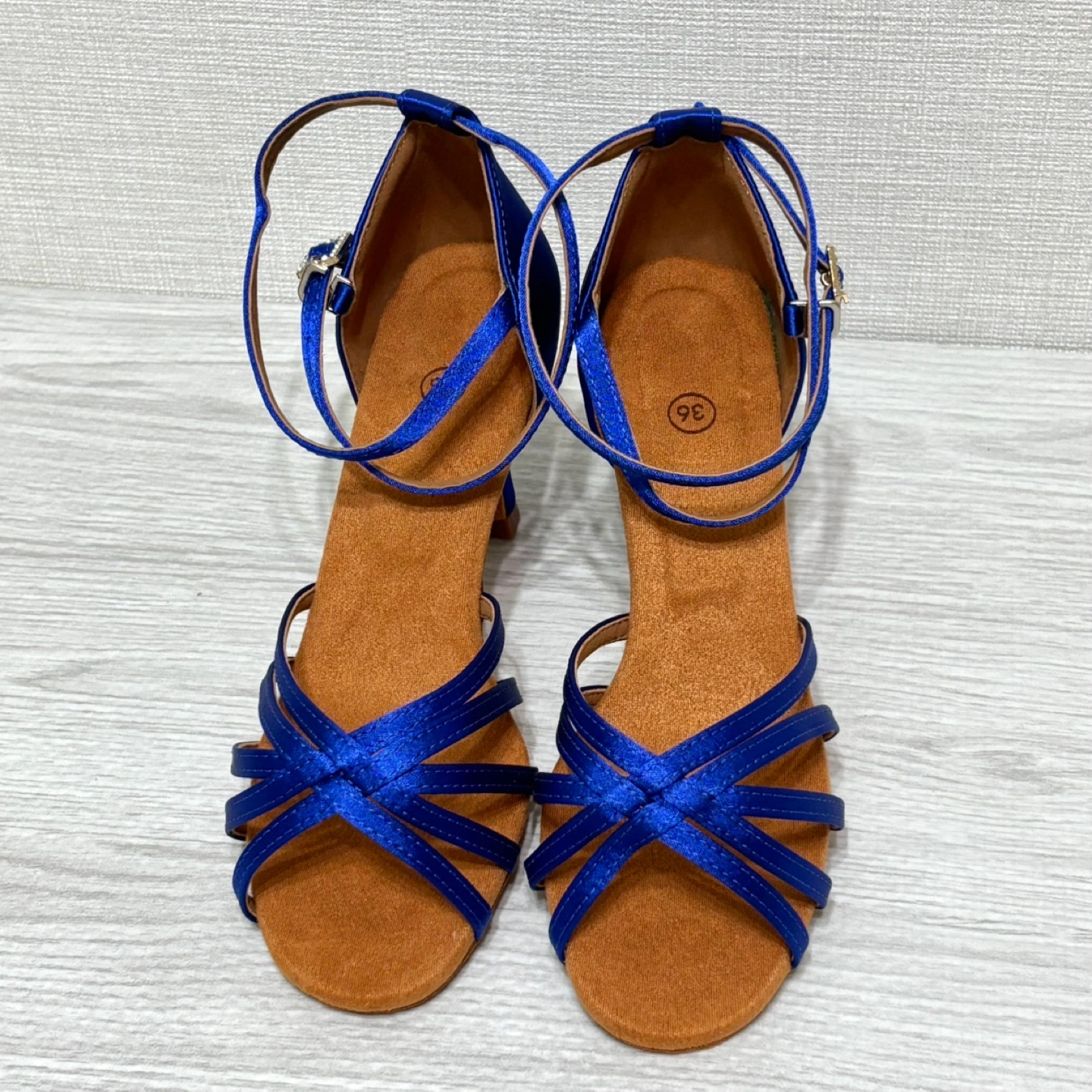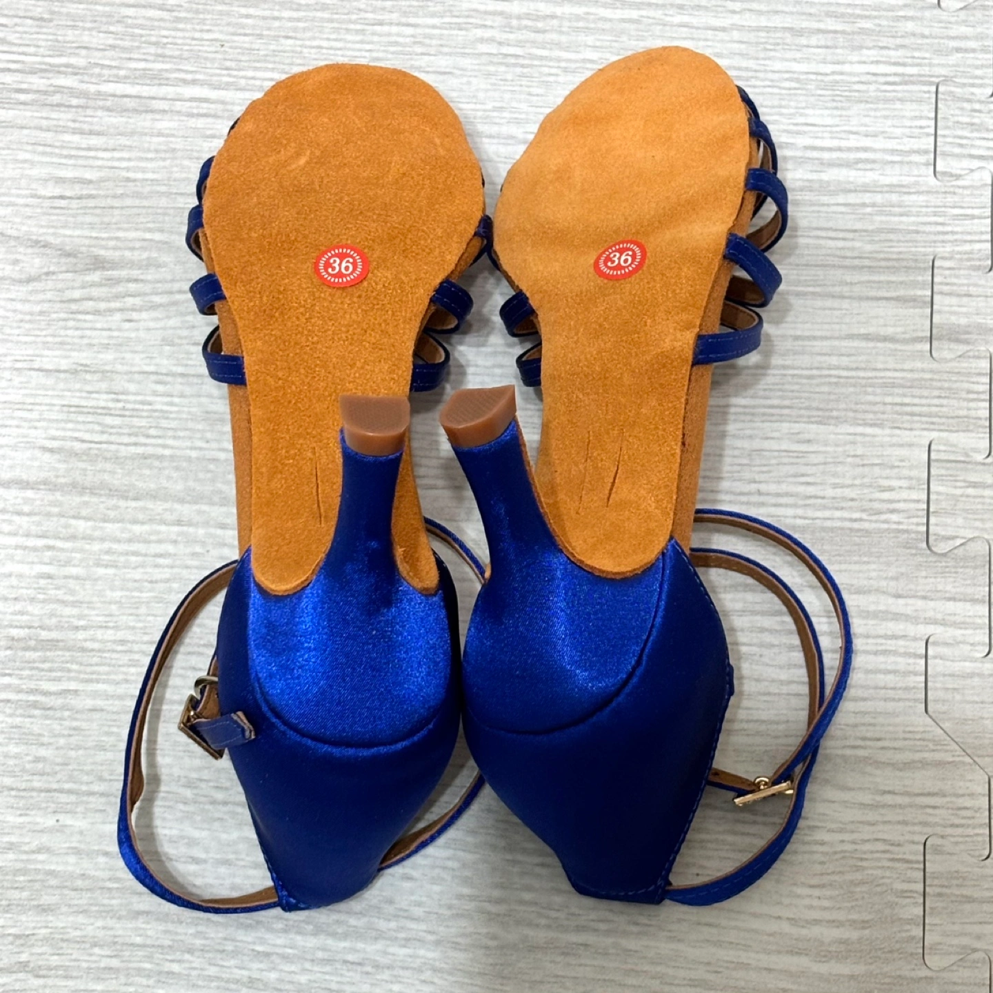 ブルーカラーが珍しい、目を惹くデザイン♪ サイズ36(ヨーロッパサイズ) 日本サイズは、23cmです。 足幅は7.5-10cm位の方まで大丈夫です ヒール高さ7.5cm 状態 新品未使用品(保管による擦れ傷など多少ある場合がございますが、見た目やお使いいただく分には問題ございません。) ヨーロッパやその他海外にて、自分用に購入した物で使わなくなったものや、仕入れしたものを販売しておりす。 ダンスをするので、ダンス関連の発表会やクラブ、パーティー、練習等で未使用品や数回着用のみの衣類も出品しております。 販売中のシューズの相談もお受け致します。 その他の商品も複数ご購入でお値引きさせていただきます。 複数ご購入の方は、町田駅、鶴川駅、玉川学園駅などへもお持ちできます。 ご希望の方はお気軽にご連絡ください。 A25