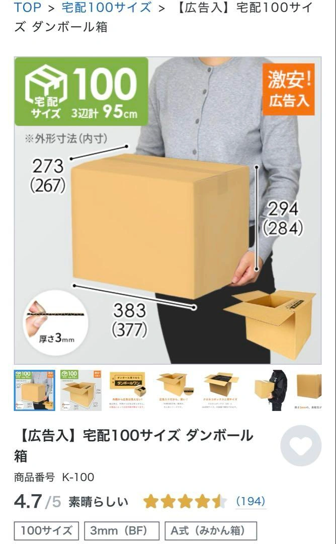 ダンボールワンで購入した広告入りの100サイズダンボールです。 引越しのため購入しましたが、引越しセンターを利用することになったので不要になりました。 20枚セットで購入、4枚使用し、未使用/新品の16枚入りです。 詳細サイズなどイメージをご参考にしてください。 ご希望の方はお気軽にご連絡ください。