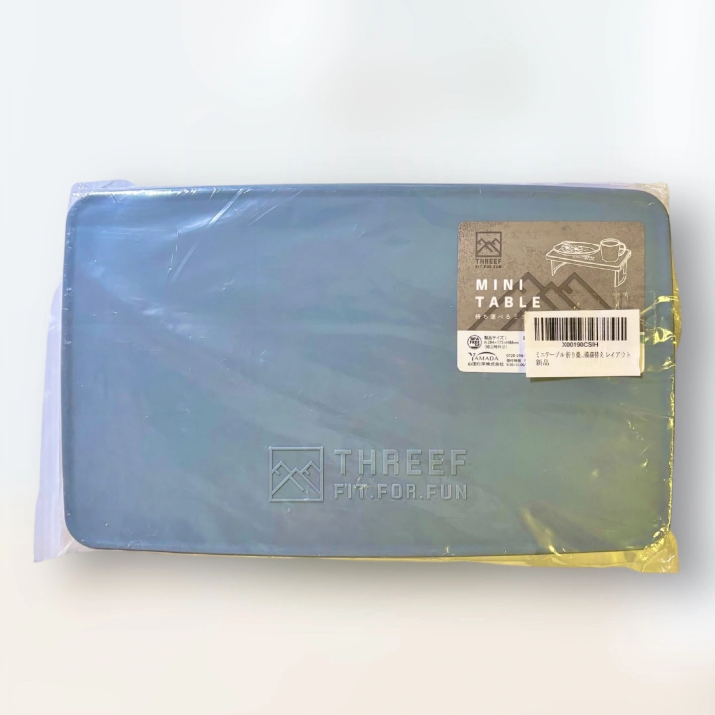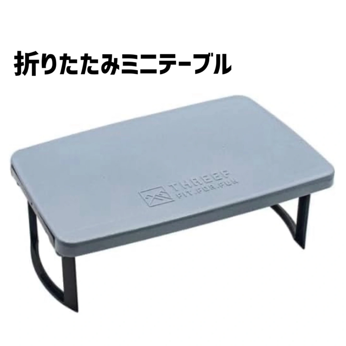 THREEF 折りたたみミニテーブル アウトドア 新品未使用 カラー : ブルーグレー 販売価格 : 748円 ●サイズ:組立時 約28.4cm×17.5cm×高さ8.8cm ●耐荷重:約1kg ●素材:原料樹脂・ポリプロピレン製 ●耐熱/耐冷温度:耐熱約140℃、耐冷約-20℃特徴:軽量で持ち運びやすく、折り畳み式で収納に便利。キャンプやアウトドア、ピクニックなどで活躍します。