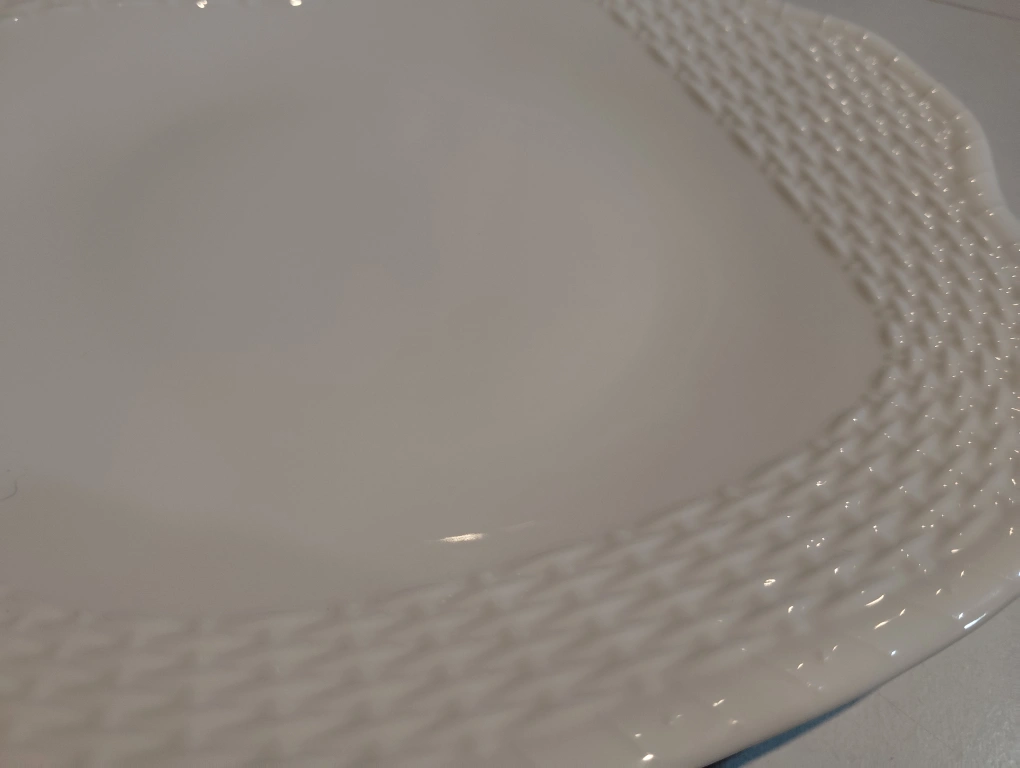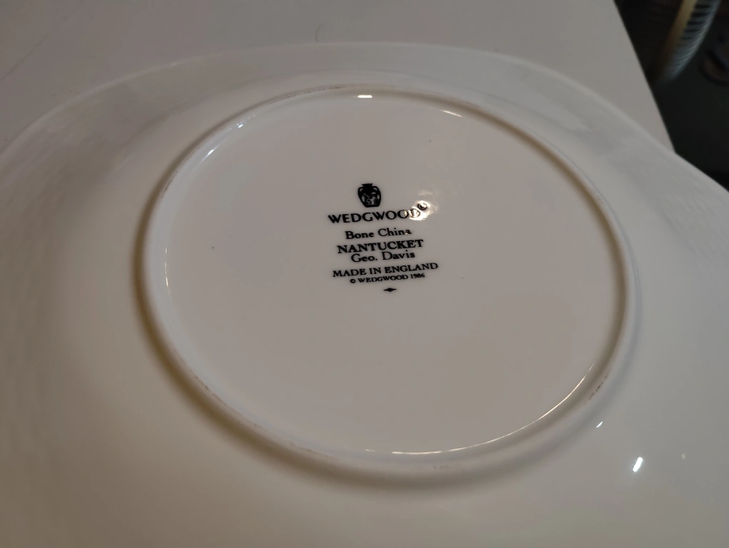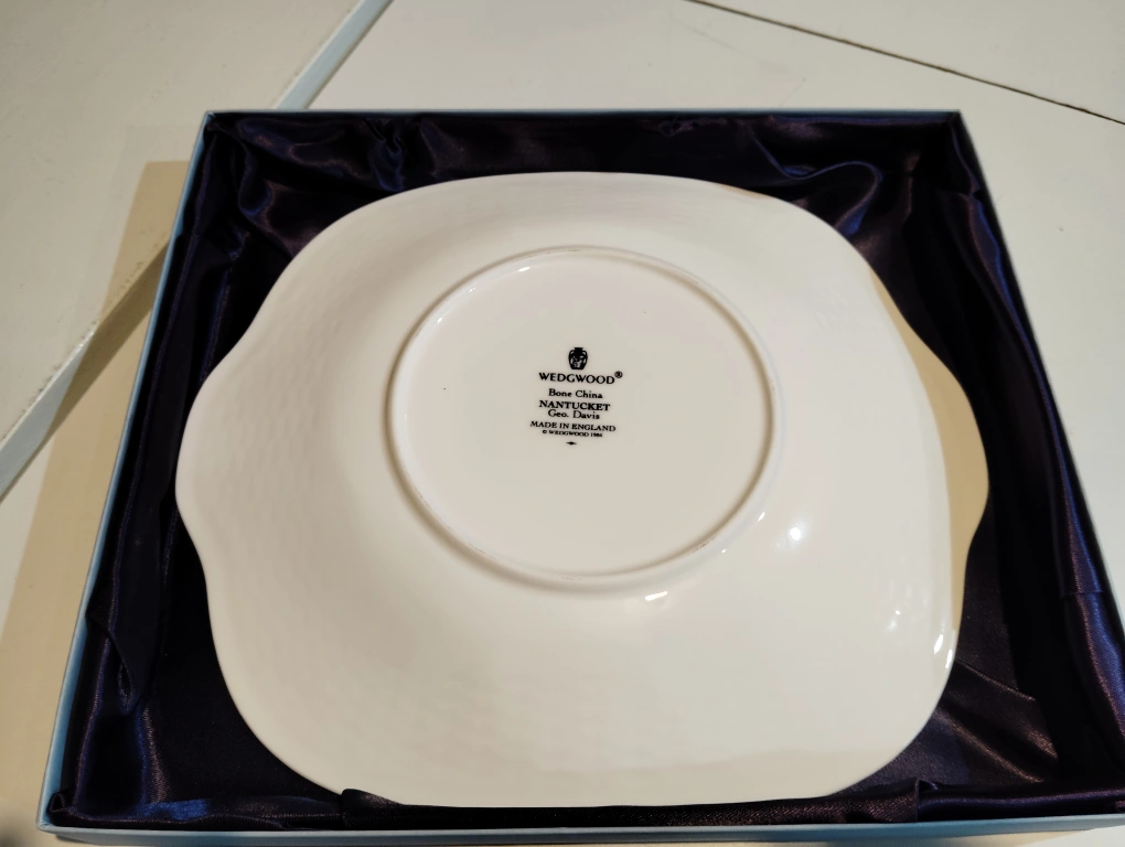 ウェッジウッド Queen's Ware クイーンズプレーン 黒壺 20年程前のもので、 現在、廃盤品となっています。 バックスタンプ黒壺の古いですが、貴重なお品物となります。 未開封のまま、自宅クロゼットにて長期保管しておりました。 箱などを含め、経年保管による臭いなどを感じる方もいらっしゃるかもしれません。 諸々、素人保管であることを、ご理解いただける方のご購入をお願いいたします。 箱には劣化あり。 #ウエッジウッド #WEDGWOOD #サラダボウル #シリアルボウル #廃盤品 #レア #クイーンズウェア #エドミー #B&B #バター&ブレッドプレート #皿 #B&Bプレート #ナンタケット #スクエアプレート #角皿 #黒壷刻印 #Made in England #英国製 ■サイズ■ 横約26センチ 縦約23センチ 高さ約2.8センチ 素人採寸のため、誤差はご容赦くださいね ★他サイトにも出品中!! 受け渡し場所は、一応経堂と指定させて頂きましたが、 自転車ですので、日時によっては、 待ち合わせ場所の範囲をもう少し拡げられるかもしれませんので、 確約はできませんが、チャットでお尋ねくださいね。 ※プロフィールご覧くださいね。