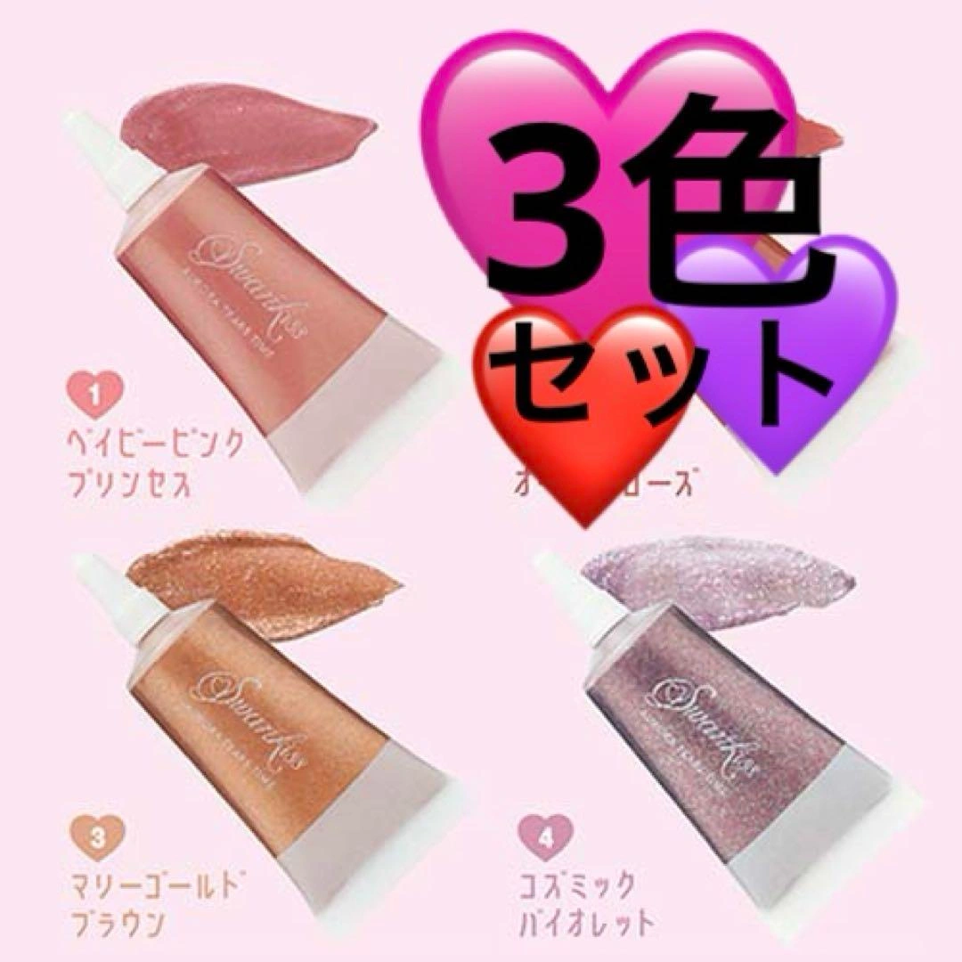 新品未開封の3色リキッドアイシャドウ・リップセットです。 リップにもアイシャドウにも使え、様々なメイクに対応可能です。 スワンキス☆ ラルムリキッド リップ/シャドー☆オーロラティアーズタイム - 色: ベイビーピンク - 色: マリーゴールドブラウン - 色: コズミックバイオレット ご覧いただきありがとうございます。 種類···リップグロス