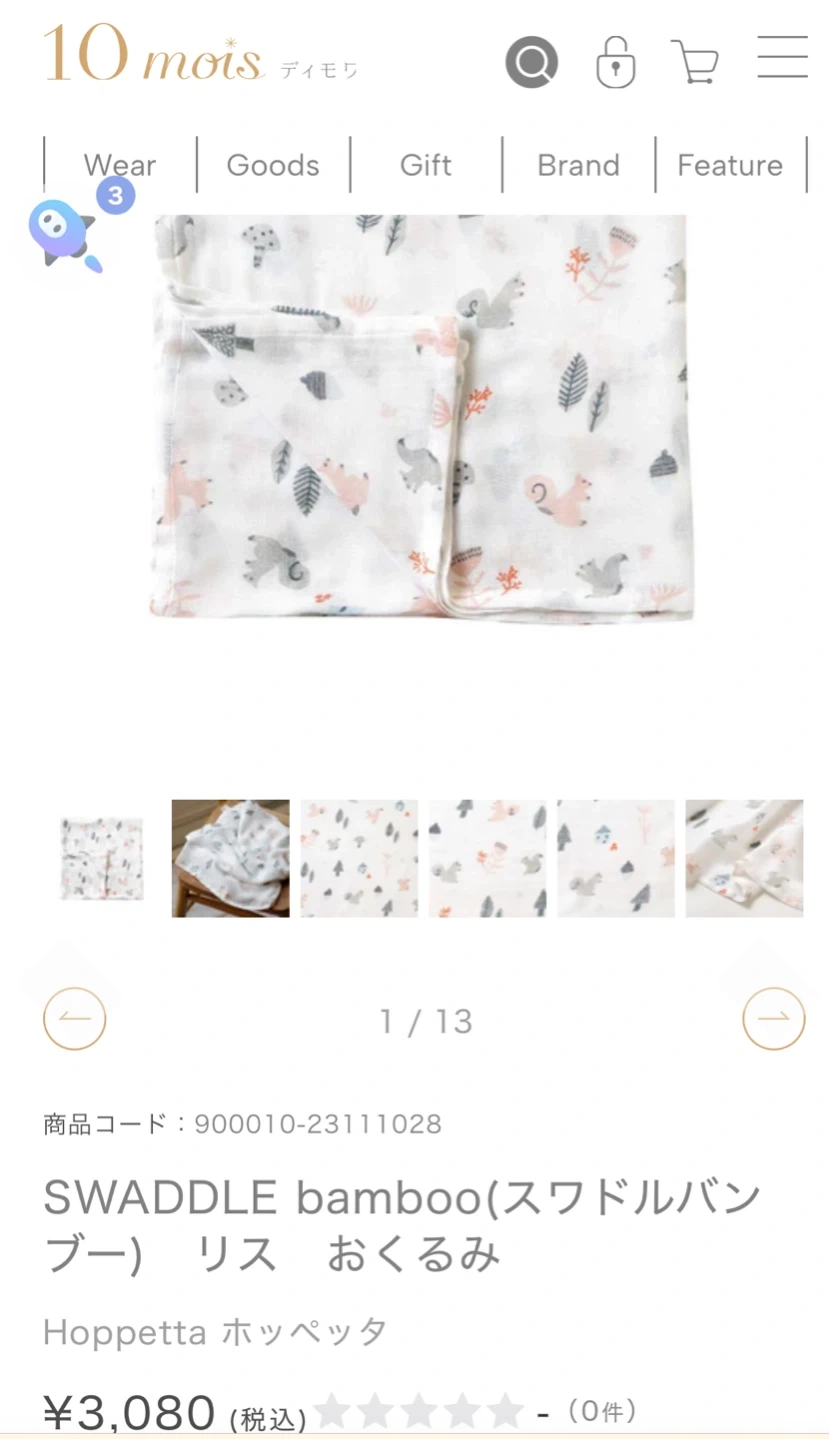【新品•未開封】10mois スワドル バンブー おくるみ