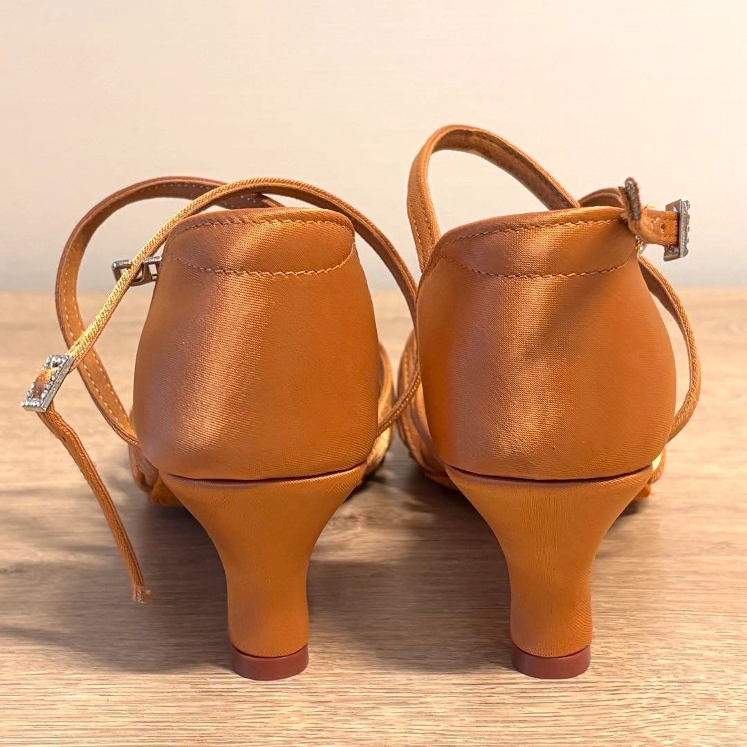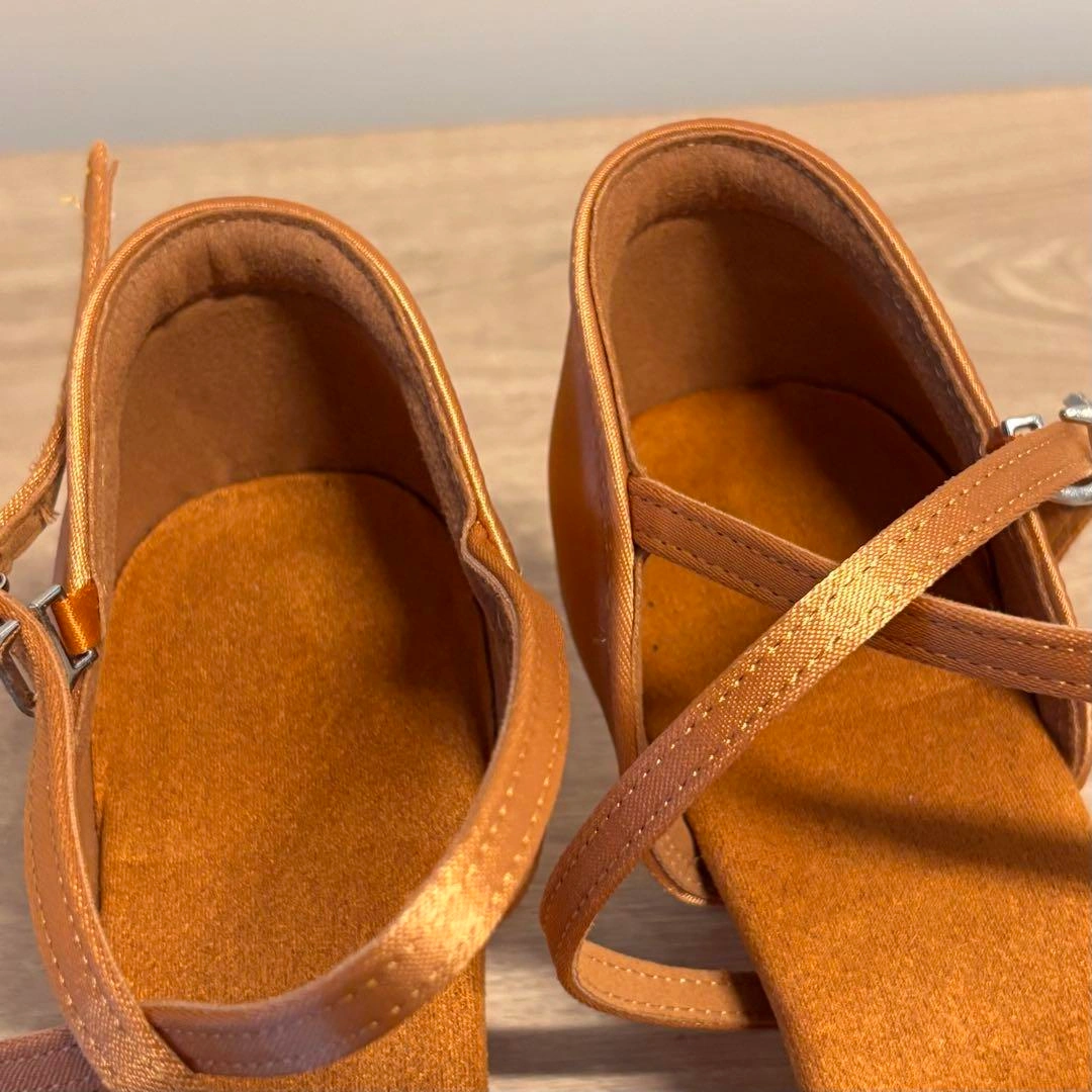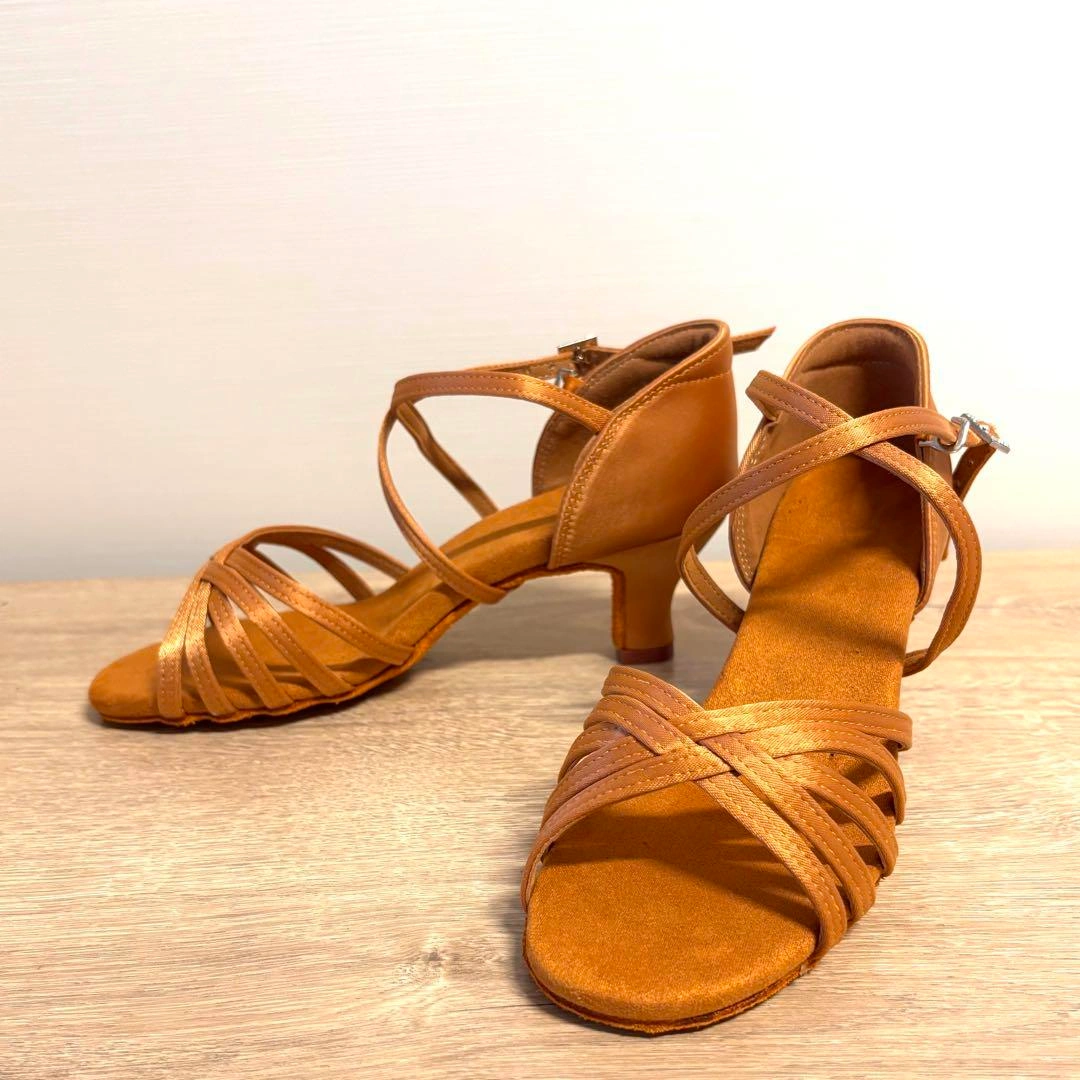新品 社交 ラテンシューズ サルサ タンゴ ライトブラウン ローヒール 24cm 形がオーソドックスなブラウンのラテンシューズ♪ 持っていて間違いないです。 ローヒールで踊りやすい! サイズ38 (ヨーロッパサイズ) 日本サイズは、24cmです。 ヒール高さ6cm 状態 新品未使用品ですが、保管による傷など、多少ある場合がございますが、見た目 やお使いいただく分には問題ございません。 ヨーロッパやその他海外にて、自分用に購入した物で使わなくなったものや、仕入れしたものを販売しておりす。 当方、ダンスをするので、ダンス関連の発表会やクラブ、パーティー、練習等で未使用品や数回着用のみの衣類も出品しております。 ご希望の方はお気軽にご連絡ください。