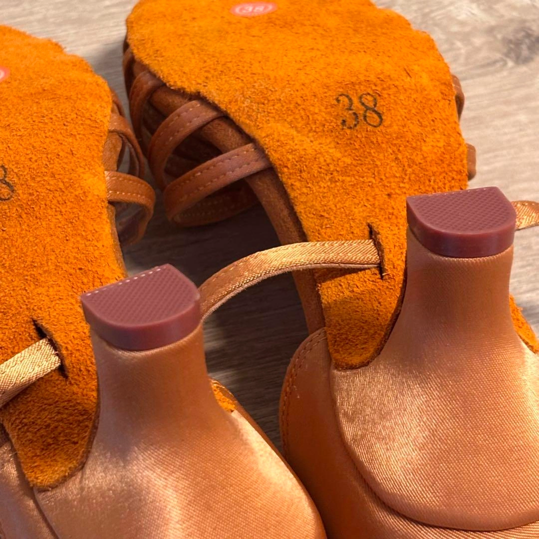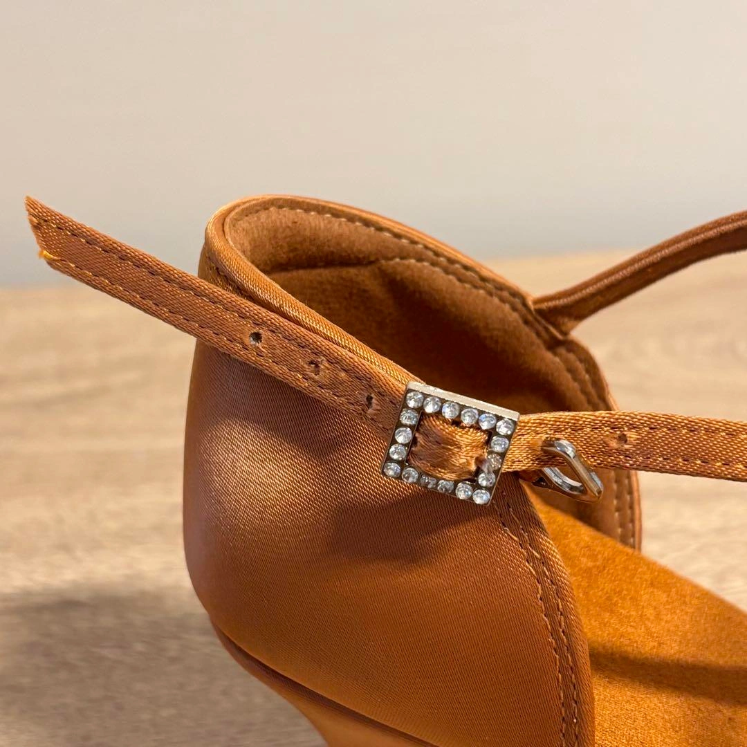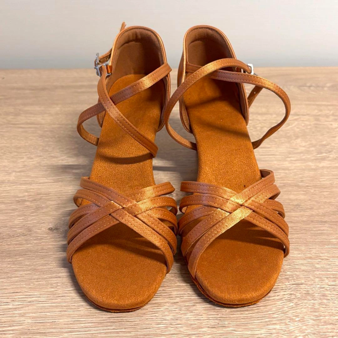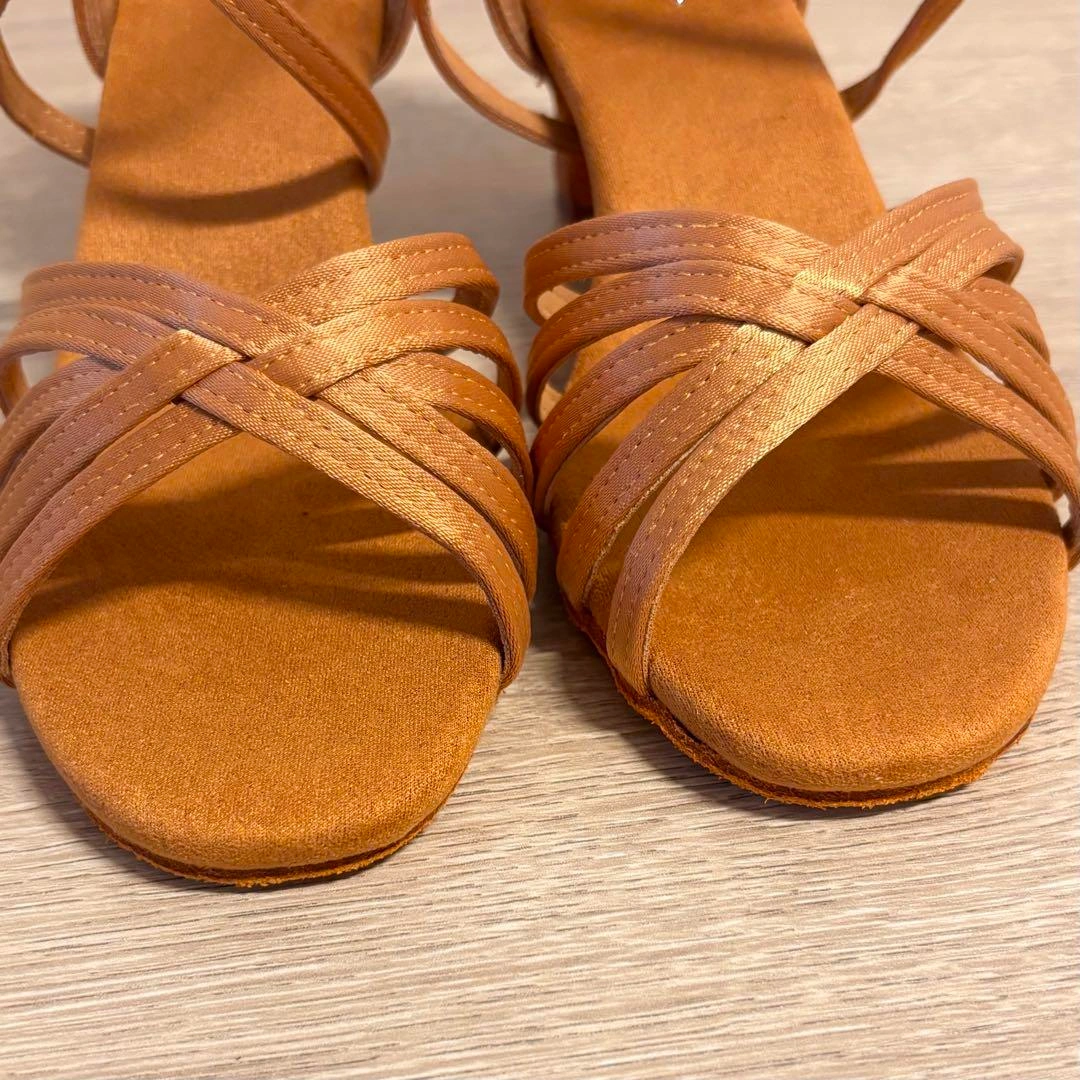 新品 社交 ラテンシューズ サルサ タンゴ ライトブラウン ローヒール 24cm 形がオーソドックスなブラウンのラテンシューズ♪ 持っていて間違いないです。 ローヒールで踊りやすい! サイズ38 (ヨーロッパサイズ) 日本サイズは、24cmです。 ヒール高さ6cm 状態 新品未使用品ですが、保管による傷など、多少ある場合がございますが、見た目 やお使いいただく分には問題ございません。 ヨーロッパやその他海外にて、自分用に購入した物で使わなくなったものや、仕入れしたものを販売しておりす。 当方、ダンスをするので、ダンス関連の発表会やクラブ、パーティー、練習等で未使用品や数回着用のみの衣類も出品しております。 ご希望の方はお気軽にご連絡ください。
