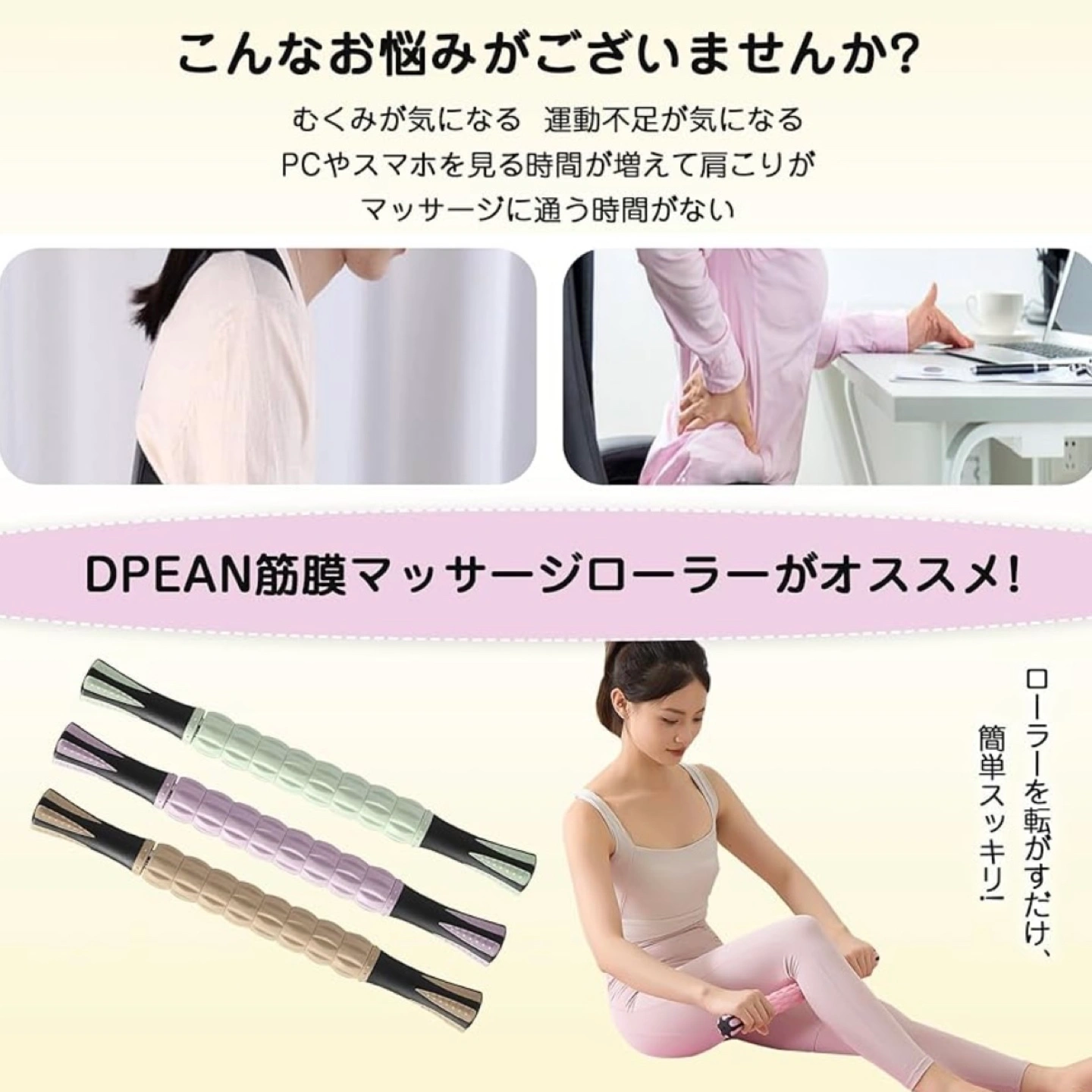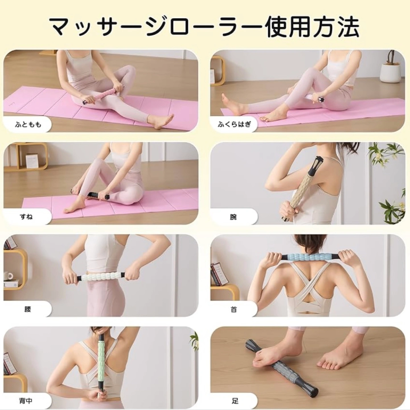 筋膜ローラー マッサージローラー DPEAN 新品未使用 カラー : ライトグレー 販売価格 : 1,800円 ●【高品質耐久性持ち筋膜ローラー 】高強度の環境に配慮した素材を使用し、耐久性に優れ変形しにくく、表面は滑らかでバリがないため、肌を傷つけることなく、安全に安心して使用できます。 ●【デザイン】人体工学デザインで全身の曲線にフィットし、8個の高弾性ローラーを搭載、肩から首、ふくらはぎまで精密にマッサージ可能。運動後の筋肉ほぐしやこわばり緩和に、心地よい使用感を提供します。 ●【省スペース&持ち運びが簡単】軽量で持ち運びやすい長さのため、自宅、オフィス、ジムなどどこでも使用可能。 ●【20種類以上のマッサージ活用術】首・背中・腰から足裏まで全身対応!外もも引き締め・内もも柔軟調整・肩甲骨リリースに加え、セルライトケアにも効果的