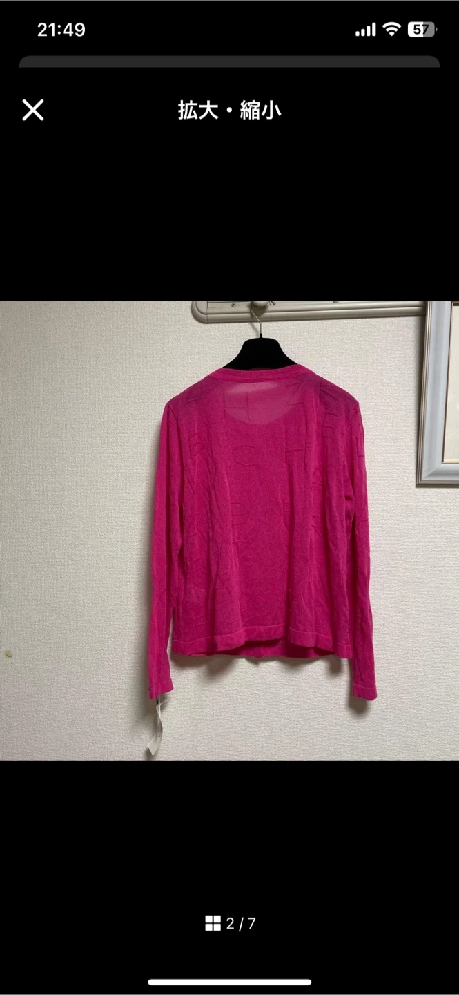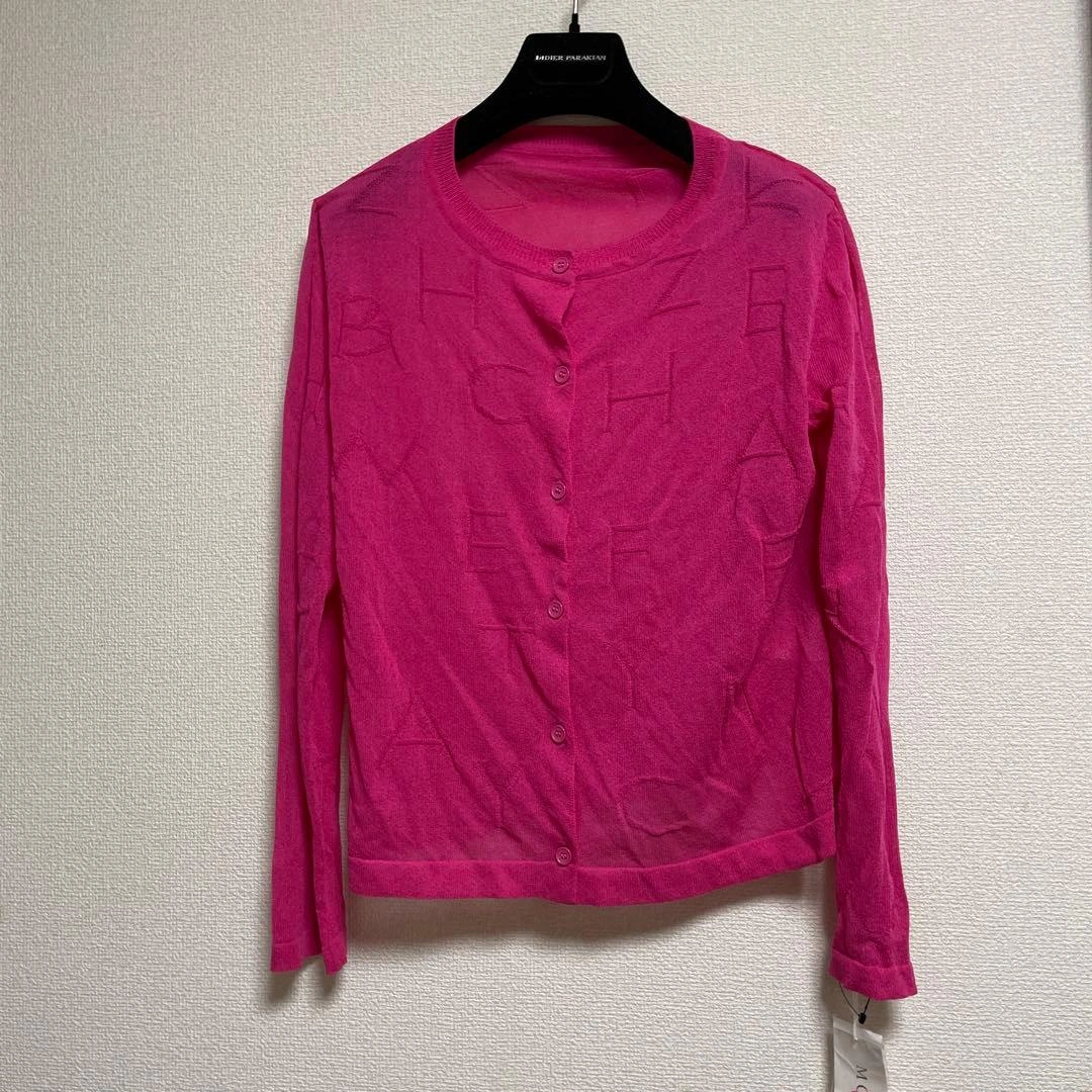未使用で保管していたものです。 暑い季節には、温度調整や日除けなど、ちょっと羽織るのに重宝すると思います。 全体にアルファベットの文字の模様が入っています。 似たようなものを他に持っているので、こちらは未使用のまま必要な方にお譲りしたいと思います。 どうぞ宜しくお願い致します。 着丈 約58cm 手洗い可 ピンクのレーヨンとナイロン混紡の長袖カーディガン。 - 色: ピンク - 素材: レーヨン 89%、ナイロン 11% ご覧いただきありがとうございます。