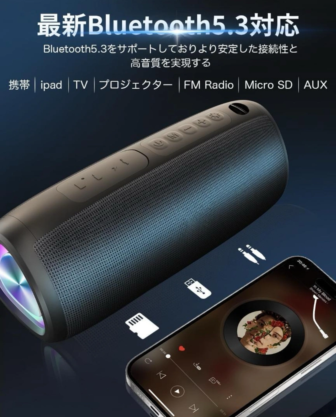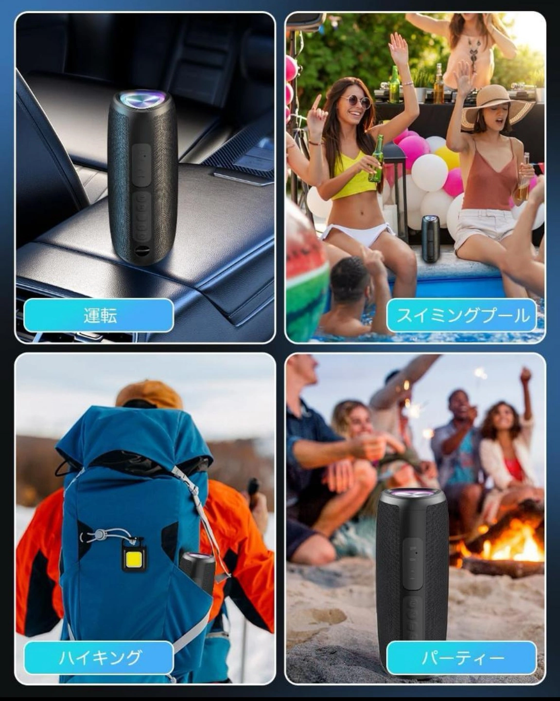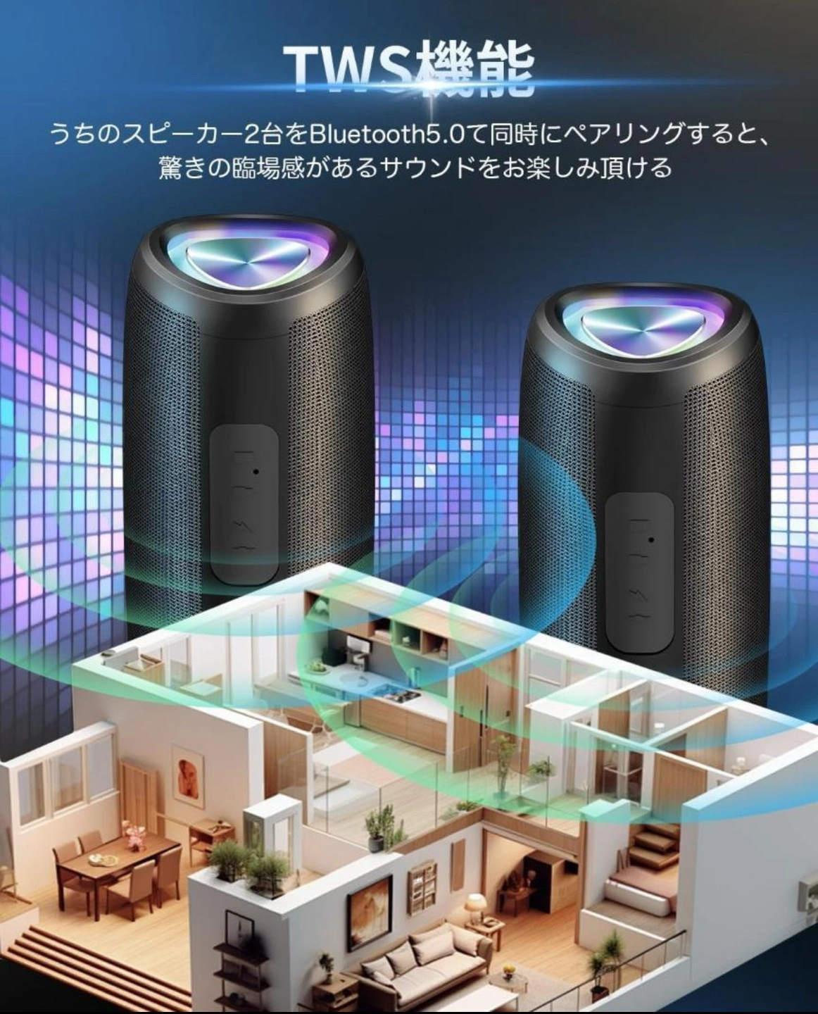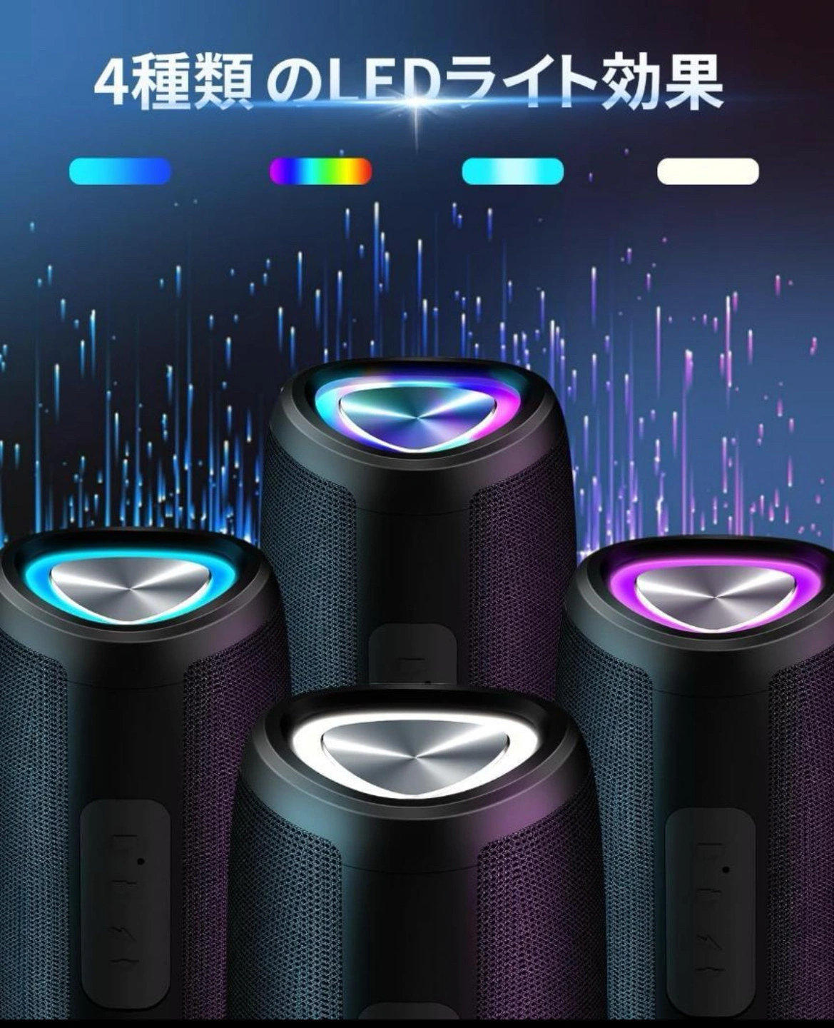 2点あります、おまとめは9000円。 24時間連続再生 LEDライト付き 重低音 IPX7防水 お風呂 マイク内蔵 TWS対応で二台接続可能 ブルートゥーススピーカー ワイヤレススピーカー Bluetooth5.3 大音量 Type-C充電 ポータブルスピーカー Bluetooth/TFカード/AUX対応 幅広い交換性 スマホ PC 車用 ブルー 【優れた音質体験】高音域は澄んだ音色を、中音域はバランスの取れた音質を、低音域は力強い重低音を実現しています。どんな音楽ジャンルでも、高品質な音質で楽しむことができ、臨場感あふれる音楽体験を提供します。 【防水設計】IPX7防水規格に準拠しており、水しぶきや雨に強い設計です。ビーチやプールサイド、キャンプなどのアウトドアシーンでの使用に最適です。お風呂場やキッチンなどの水回りでも安心して使用できます。耐久性にも優れており、さまざまな環境で活躍します。 【多機能接続方式】Bluetooth 5.3技術を搭載し、遠距離でも安定した接続が可能です。AUX入力、TFカード再生、USB再生にも対応しており、スマートフォンやタブレット、PCなど多様なデバイスと接続できます。また、デュアルデバイス接続機能により、2つのデバイスを同時に接続し、シームレスに切り替えて使用することができます。 【超長続再生時間】内蔵された大容量バッテリーにより、最大24時間の連続再生が可能です。長時間の旅行やアウトドア活動でもバッテリー切れを心配することなく、途切れることなく音楽を楽しむことができます。大音量での再生でもバッテリーの持ちが良く、日常の使用に非常に便利です。 【持ち運び便利】軽量でコンパクトなデザインで、持ち運びが便利です。バッグやリュックに簡単に収納でき、どこにでも持ち運べます。また、内蔵されたライトエフェクトは音楽のリズムに合わせて自動的に変化し、パーティーやイベントを華やかに演出します。ロマンチックな雰囲気を作り出す夜のライトとしても使用でき、休日やお祝いの日に最適です。