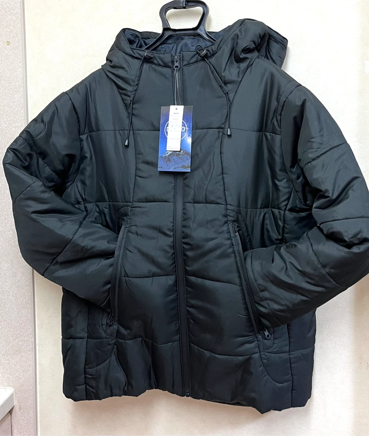 新品の中綿ブルゾン フェイクダウンジャケット ブラック LLサイズ 3 購入しましが、サイズ合わずで出品します。 新品未使用でタグ付きです。 {以下購入時の商品説明} 撥水・防水性のあるデュスポ素材を使用した中綿ブルゾンです。ボディ全体に入る曲線を描いたキルティングラインが、動きのある、スポーティーな雰囲気を見せてくれるジャケット。 肩からナチュラルに流れるフードへのラインがスタイリッシュなデザイン。袖口は内側にリブ袖がある二重構造なので冷たい風も防いでくれるつくりとなっています。 【素材】ポリエステル 100% 【カラー】ブラック 【サイズ】LL 着丈 約69cm 身幅 約58cm 肩幅 約48cm 袖丈 約63cm お探しの方、如何でしょうか。