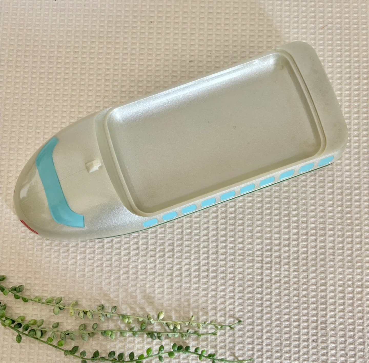 新幹線デザインの子ども用プレート、電車好きのお子様の食事が楽しくなるアイテムかと思います。 飾っていただけで子供の食事には使ってはいません、酷いダメージは無いかと思いますが、 自宅保管品、中古品になります。 ご理解ある方にお譲りします。 横幅 約38センチぐらい 縦幅 約14センチぐらい 一番大きな部分です、 - デザイン: 新幹線の形状 - カラー: シルバー、青、緑 - サイズ: お子様用プレート - 特徴: 滑らかな表面仕上げ、リアルな車両デザイン ご覧いただきありがとうございます。 #新幹線 #のぞみ #お子様ランチ #ランチプレート #皿 #プレート #お子様食器 #プラスチック
