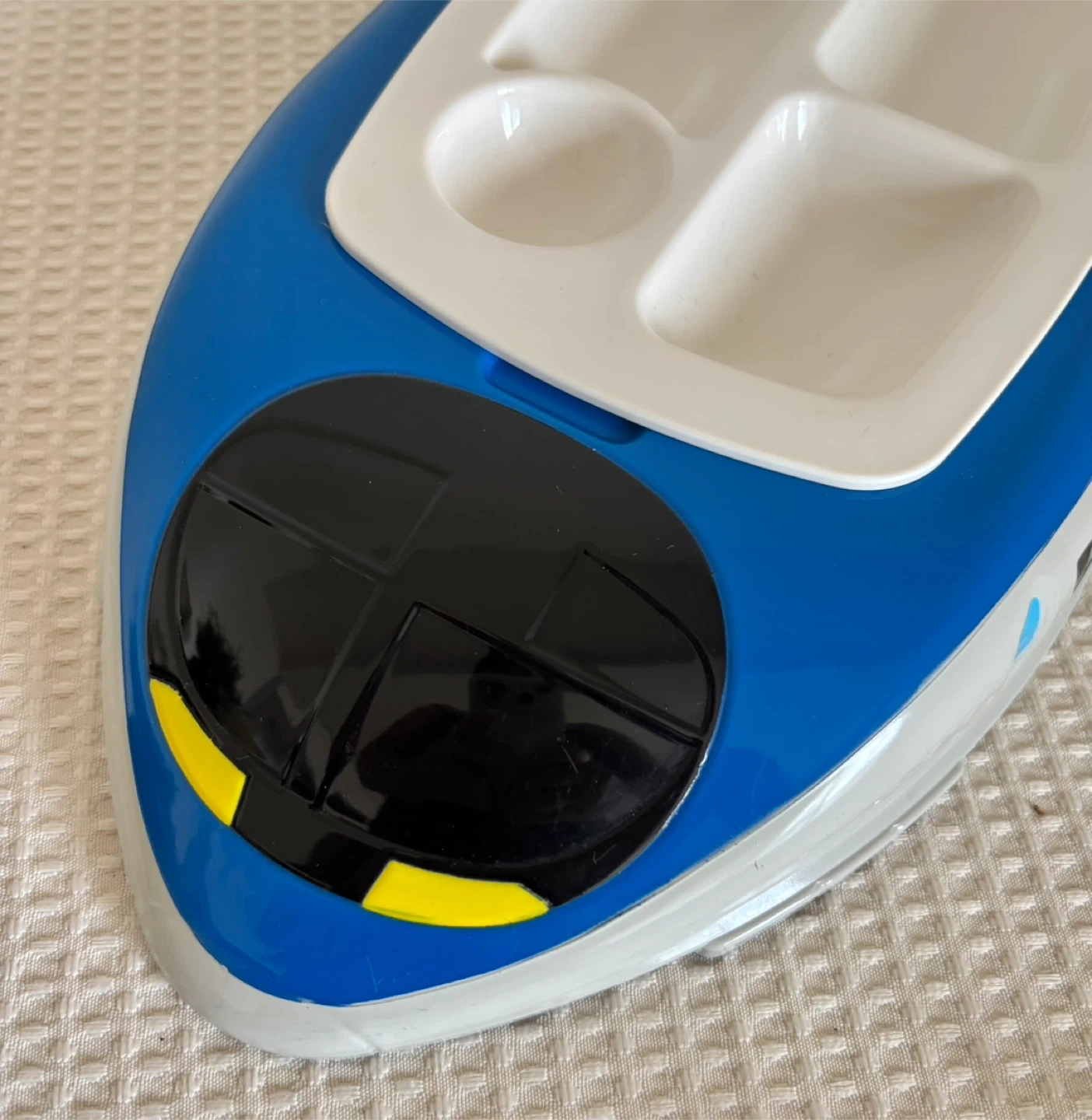 新幹線型の子供用お子様ランチプレート 2個セット、電車好きのお子様が食事が楽しくなるデザインかと思います。 酷いダメージは無いかと思いますが、 自宅保管品、中古品になります。 ご理解ある方にお譲りします。 だいたいのサイズ 縦幅 約19.5センチぐらい 横幅 約34.5センチぐらい - デザイン: 新幹線型プレート - 色: 青と白 - 素材: プラスチック - 数量: 2個セット - 用途: 子供用食器、ランチプレート ご覧いただきありがとうございます。 #新幹線 #のぞみ #お子様ランチ #ランチプレート #皿 #プレート #お子様食器 #プラスチック