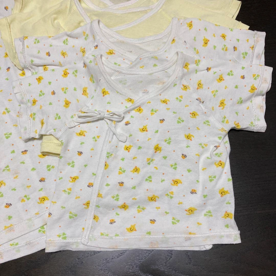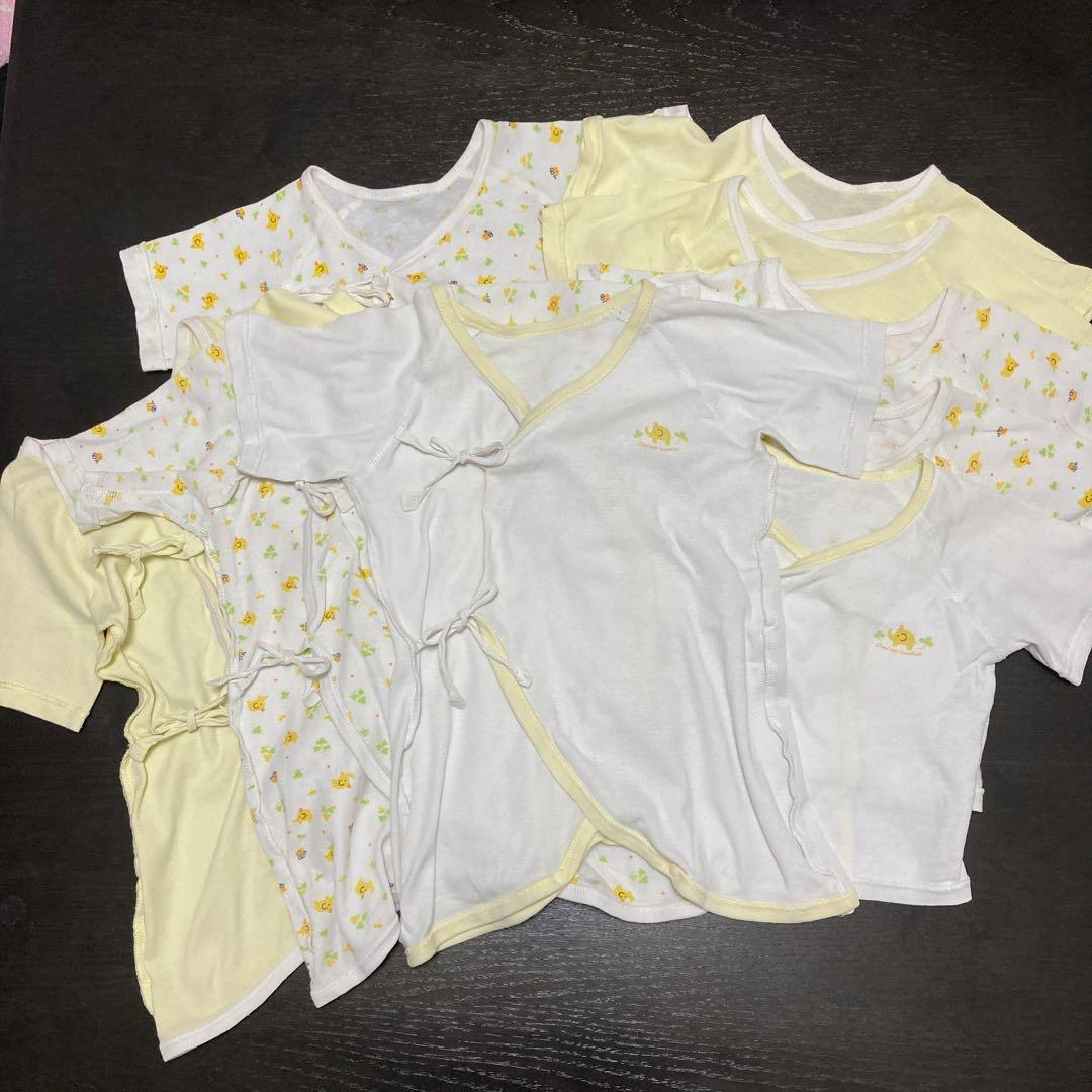 新生児用の肌着9点セットです。 新生児期に重宝しました。 若干使用感がありますが、目立つ汚れはございません。赤ちゃん用洗剤で洗濯済みです。 タグ付近に名札タグを縫った跡があります(画像6枚目)。 サイズ: 50〜60 内容: 短肌着×5、長肌着×1、ロンパース型肌着×3、計9着 色: 白、クリームイエロー、ゾウさん柄 定価: 3,298円 赤ちゃんが使用していたものなので、ご理解いただける方にお譲りできればと思います。 素材: コットン100% 季節感: 春、夏、秋、冬 ご希望の方はお気軽にご連絡ください。