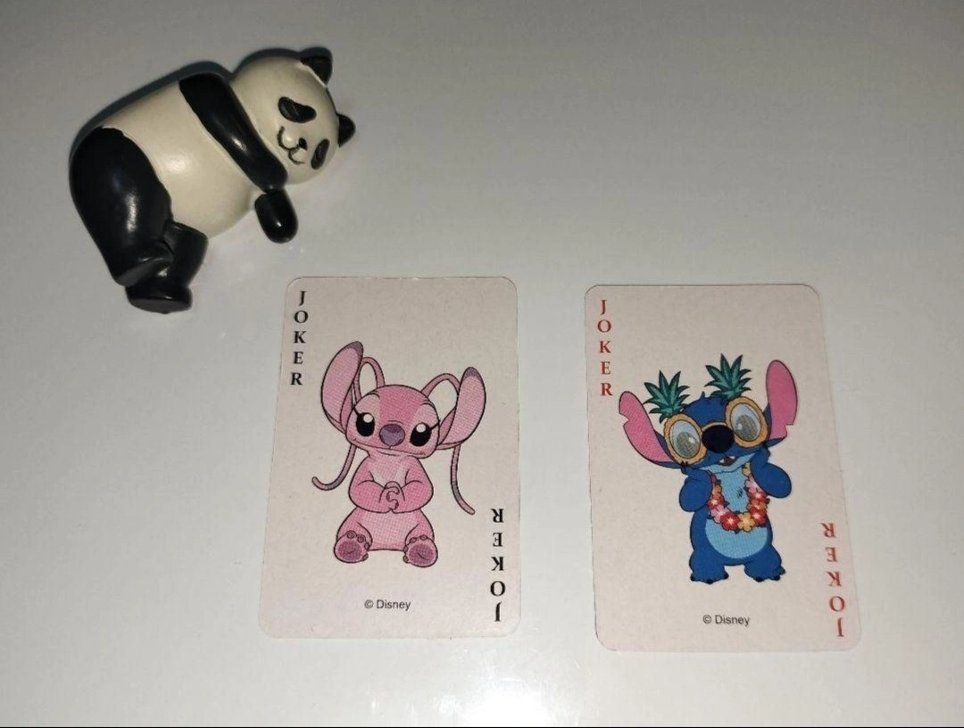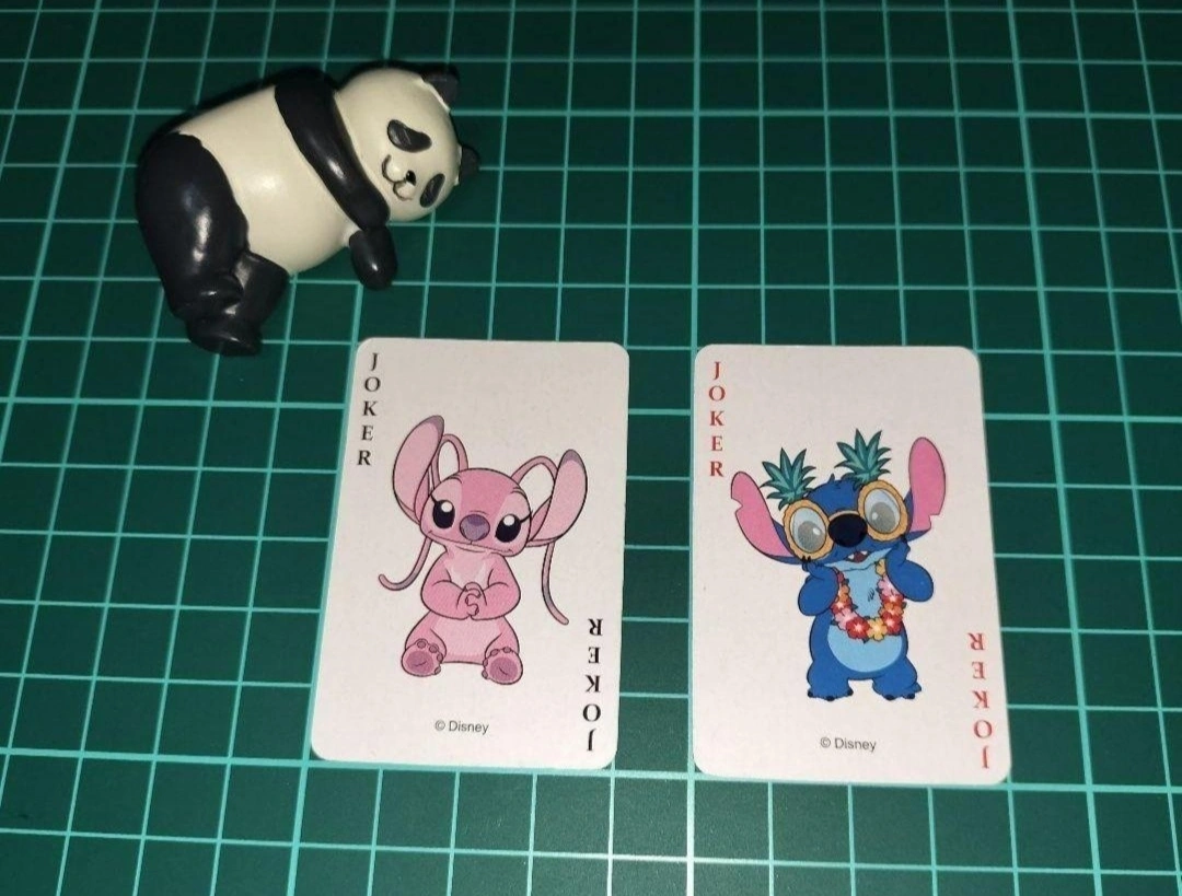スティッチデザインのトランプ、手軽で小さくて持ち運び便利な52枚入り、絵柄の可愛いジョーカー付きです。 - デザイン: スティッチのイラストが描かれたトランプになります。 - パッケージ: 青色のパッケージにスティッチの顔がデザインされています。 - カード枚数: 51枚のトランプカード+ジョーカー2枚加えた合計53枚です。 K(13)のハートが入っていないです。 - 特別なカード: スティッチのイラストが描かれたジョーカーカード(2枚)が含まれています。 - スート: ハート、ダイヤ、クラブ、スペードのスートが含まれています。 - サイズ: 縦約6cm.横約4cm.厚さ約2cm サイズは写真⑦.⑧をご参考にしてください。 写真④のように多少の汚れ、めくれている部分があります。 ジョーカーは写真⑥.⑦です。 使用していたので中古品となります。 ご理解いただける方のみご購入のほど 宜しくお願いいたします。 ご覧いただきありがとうございます。 写真にうつっているパンダは販売品ではありません。