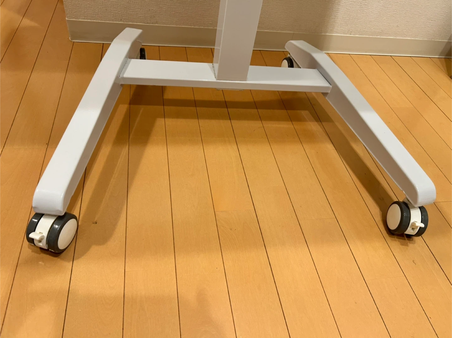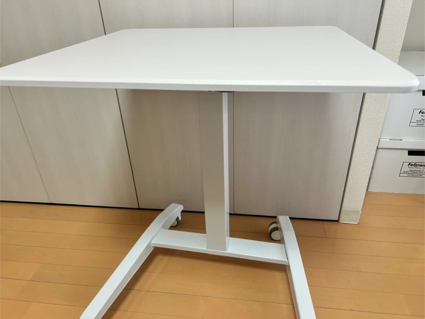 昇降式のデスクです。 サイズはコンパクト、キャスター付きなので移動も楽に出来ます。 デスク下のガス圧式のレバーで簡単に高さ調節が可能です。 購入は約1年半で、美品です。 定価は¥10,900 ・色:白 ・キャスター付き ・昇降機能付き ・天板耐荷重8kg ※机上にタブレットとカップフォルダーがないフラットなタイプになります。