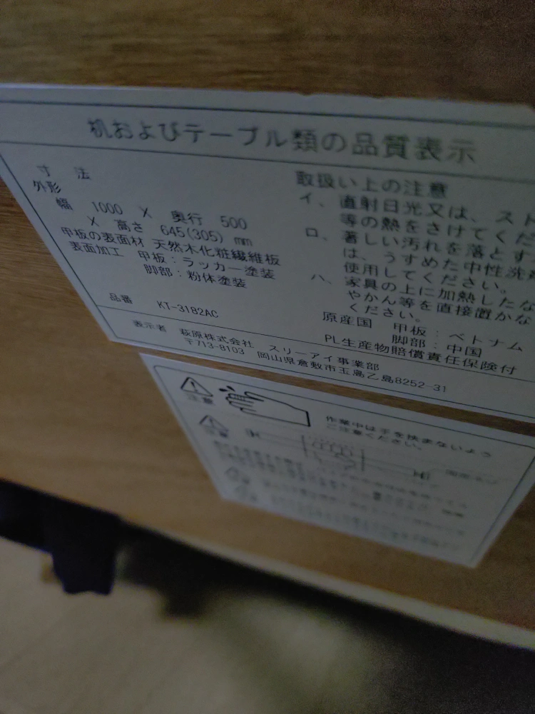 テーブルです 【情報】 外形寸法:幅1000 x 奥行500 x 高さ645(305)mm 品番:KT-3182AC 【状態】 以前、部屋の模様替えを行う際に、キャロットにて見つけて購入しました。昇降式のテーブルが欲しいと家族が言っていたので購入しましたが、模様替えした場所的に使うことがないため、出品します。多少の使用感、傷はありますが、大きな深い目立つ傷はありません。1つ、購入時から部品が1つありませんが、使用には問題ありません。ホームセンターなどで手に入るネジのクッション材です。 中古品であることご了承ください。