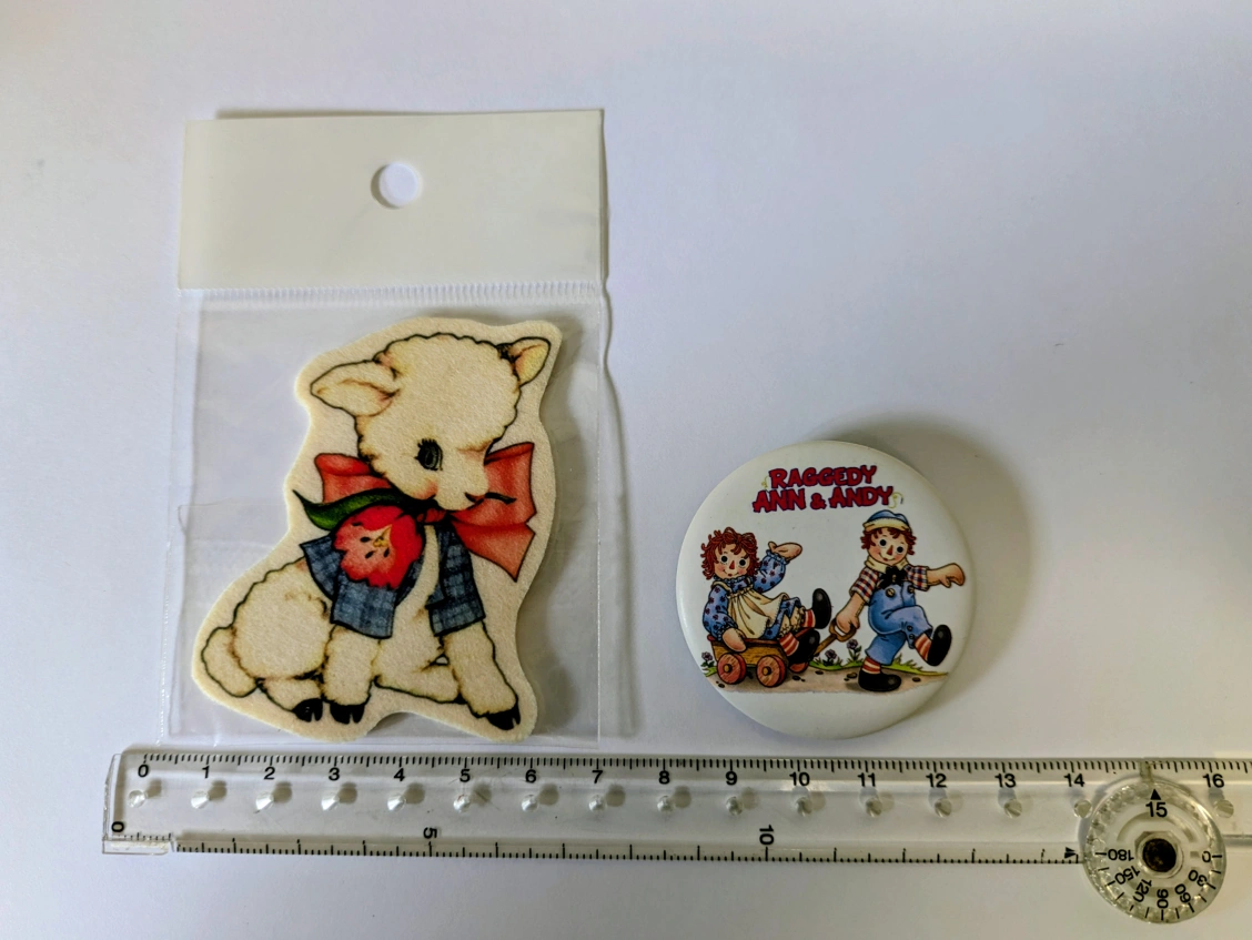 羊のアップリケと、ラガディアン&アンディのバッジです。 どちらも数年自宅保管品です。 ・状態: アップリケ 未開封 バッジ 目立つ傷なし 中古品であることご了承ください