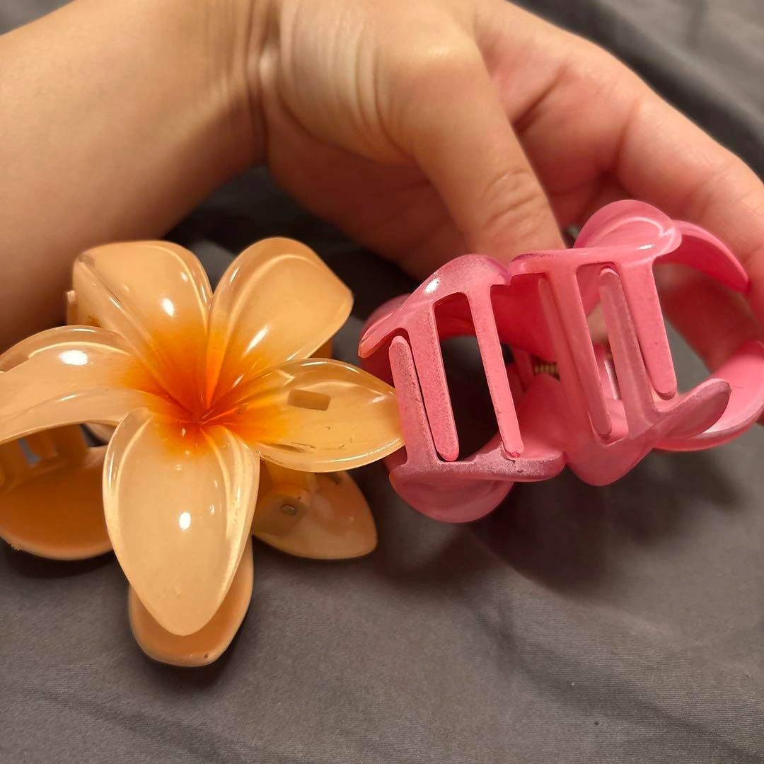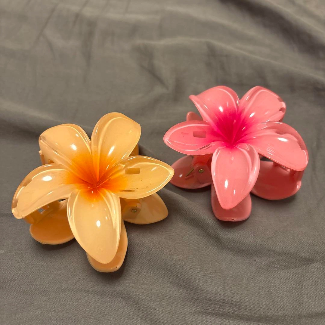 鮮やかなプルメリアのヘアクリップ2個セット、プラスチック製で軽量。 一箇所破損がありますが問題なく使えます。気になる方はやめてください。 色合いが夏っぽくて可愛いです! 単品でも受け付けます! 一個430円 - カラー: オレンジ、ピンク - デザイン: 花型 - 素材: プラスチック - 数量: 3個セット ご覧いただきありがとうございます。