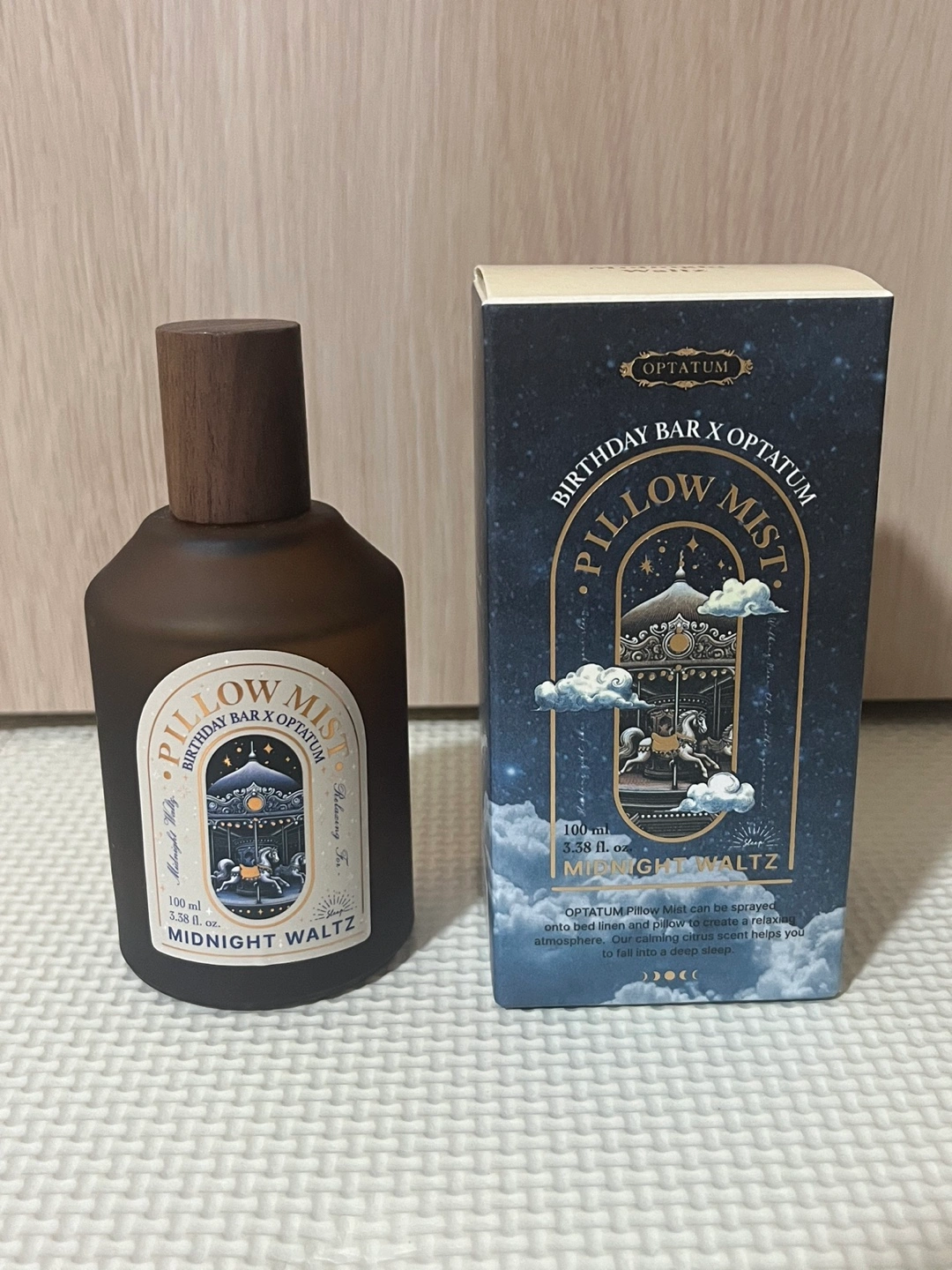 定価:3,410円 状態:残量9割以上 昨年夏にいただいたのですが、小さな子どもと寝ているため使う機会がなく、ほんの数回だけ使ってしまったままになっていたものを引越しを機に出品いたします。 問題なくご使用いただけるかと思いますが、気になる方はご遠慮ください。 中古品であることをご了承の上、ご購入くださいませ。 ご不明点などございましたらお気軽にお尋ねください。 以下、商品説明になります。 就寝前のマストアイテム「OPTATUM」のピローミスト 寝る前やリラックスしたい時、枕やシーツなどのリネン類にスプレーしてお使いください。 心地よく優しい香りで1日の疲れを回復させます。 低刺激テスト済みで、身体に長時間直接触れる寝具にも安心してご使用いただけます。 また優れた消臭力と抗菌力で空間をケアし、頻繁に洗濯が難しい寝具を細菌から安全に守ります。 星空をイメージしたオシャレなパッケージに入っており、ギフトにもオススメです。 ○Midnight Waltz(ミッドナイトワルツ)<BIRTHDAY BAR×OPTATUM別注商品> 爽やかなレモンとフレッシュなマンダリンがあたたかいジンジャーとミュゲに出会い、澄んだ夜空のようにやさしい落ち着くシトラスの香り 〈TOP〉 Lemon,Mandarin,Marine 〈MIDDLE〉 Ginger,Muguet 〈BASE〉 Musk,Wood 〇容量 100ml/3.38 fl. oz. 【使用方法】ピローミストは寝具から20cmほどの距離で2~3回噴射してください。 OPTATUM(オプタウム)】 プレミアムな香りと日常に特別な感性を追求する、ラグジュアリーヴィンテージコンセプトのフレグランスブランドです。 「大切な人におくる価値のある製品だけ作ろう」というコンセプトのもと、19世紀イギリスの華やかさとヴィンテージ感を表現。