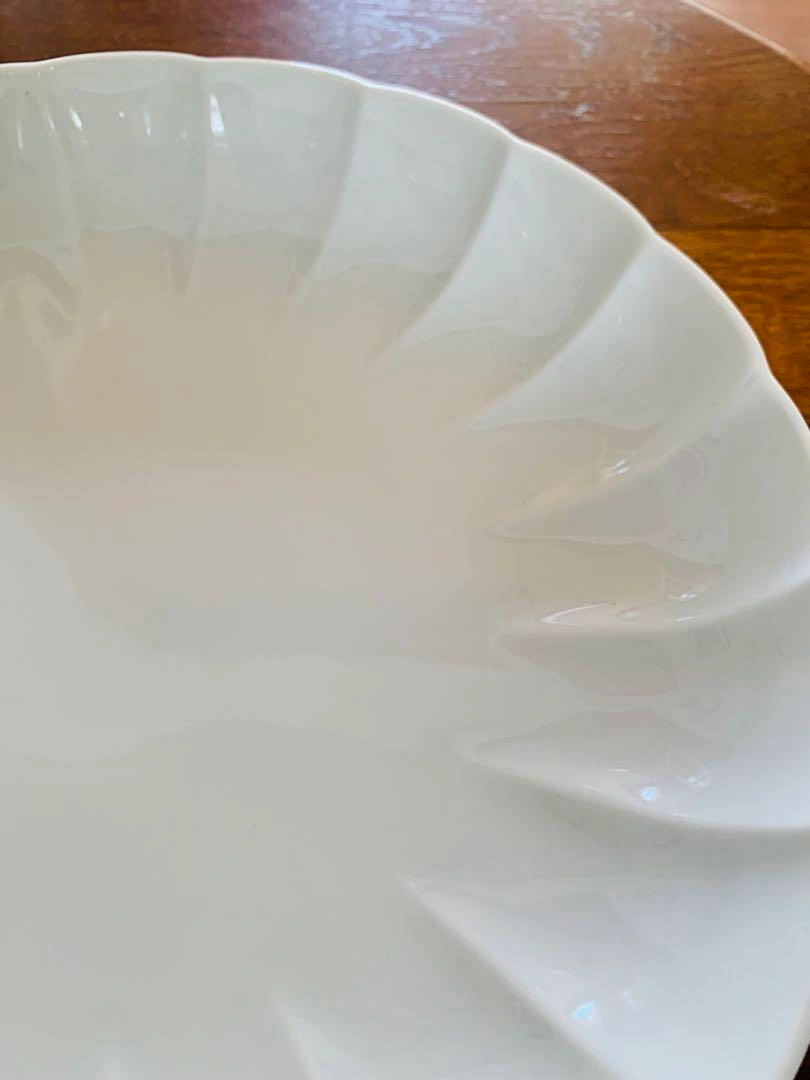 有田焼、ホワイト 波形特大皿、36cm