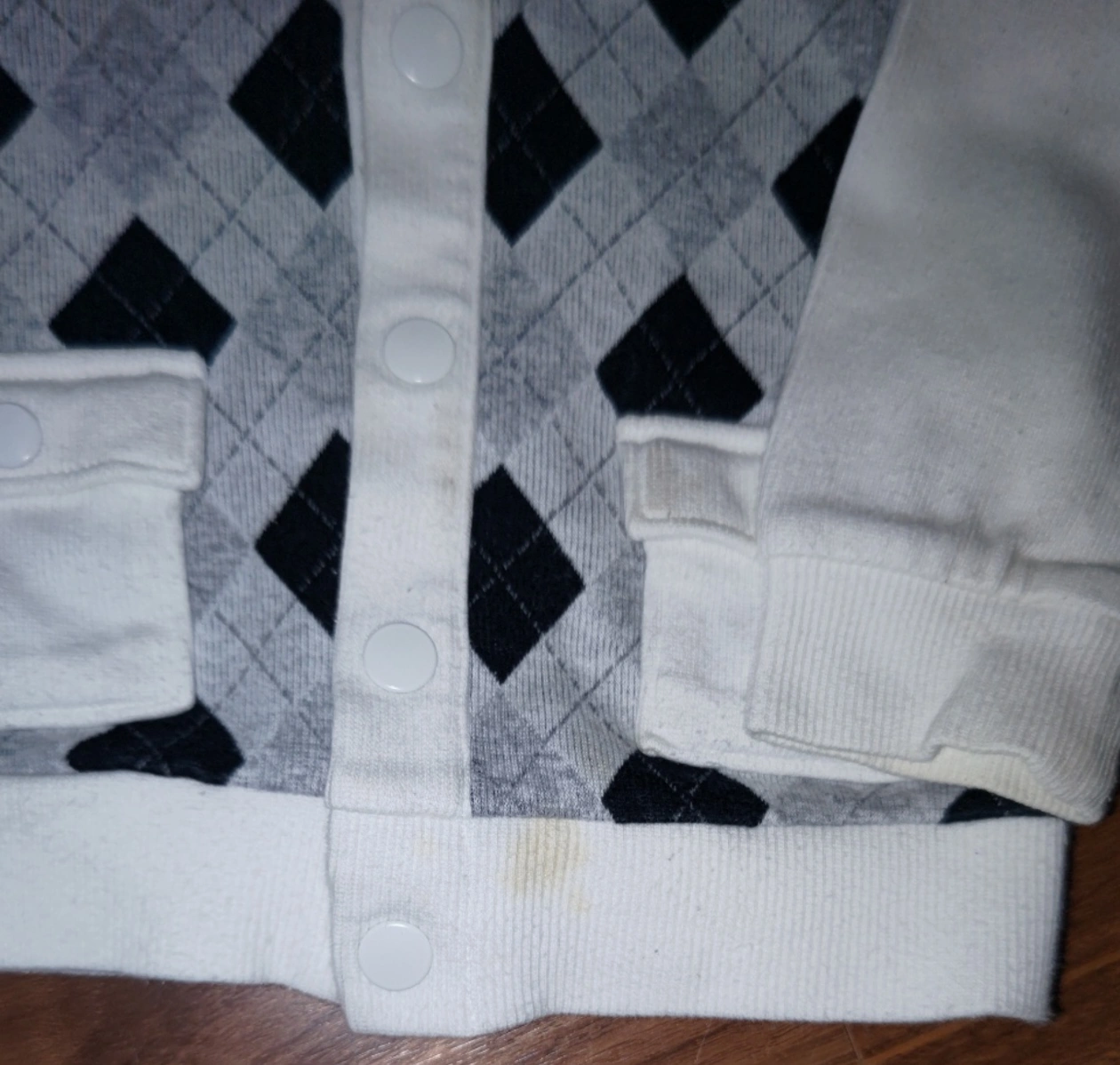 ☆期間限定での出品予定です。 ☆お値下げしています。(処分価格です。) 配色とア一ガイル柄とのバランスが良い点が気にいり、選びました。 ほとんど着ることがなかったですが、裾あたりに色のついた箇所があります。 洗浄済ですが、裾の色のついた箇所に対して、専門的な洗浄方法は試みていません。 上記の色が付いている箇所がある(現状でのお渡し)・(現在、6月ですが、)季節外れの長袖、 以上の点から、価格を抑えて出品しています。 受け渡しについては、プロフィールを ご覧下さい (お問い合わせいただきました時に、詳細の場所をお伝えいたします。) プロフィールに記載している場所以外をご希望の場合、まずは ご相談下さい。