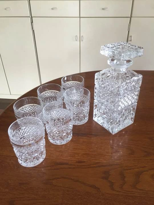 大変美しいカットのグラスデキャンタとグラス6個セットです。 オーソドックスなタイプで、かなり重厚感があります。 飾っていて、ほとんど使っていません。 グラスも6個揃っているのは珍しいかと思います。 大変美品ですが、自宅保管品である点をご了承ください。 デキャンタ 高さ23cm、幅9cm グラス 高さ9cm、直径8cm、6個 ご希望の方はお気軽にご連絡ください。