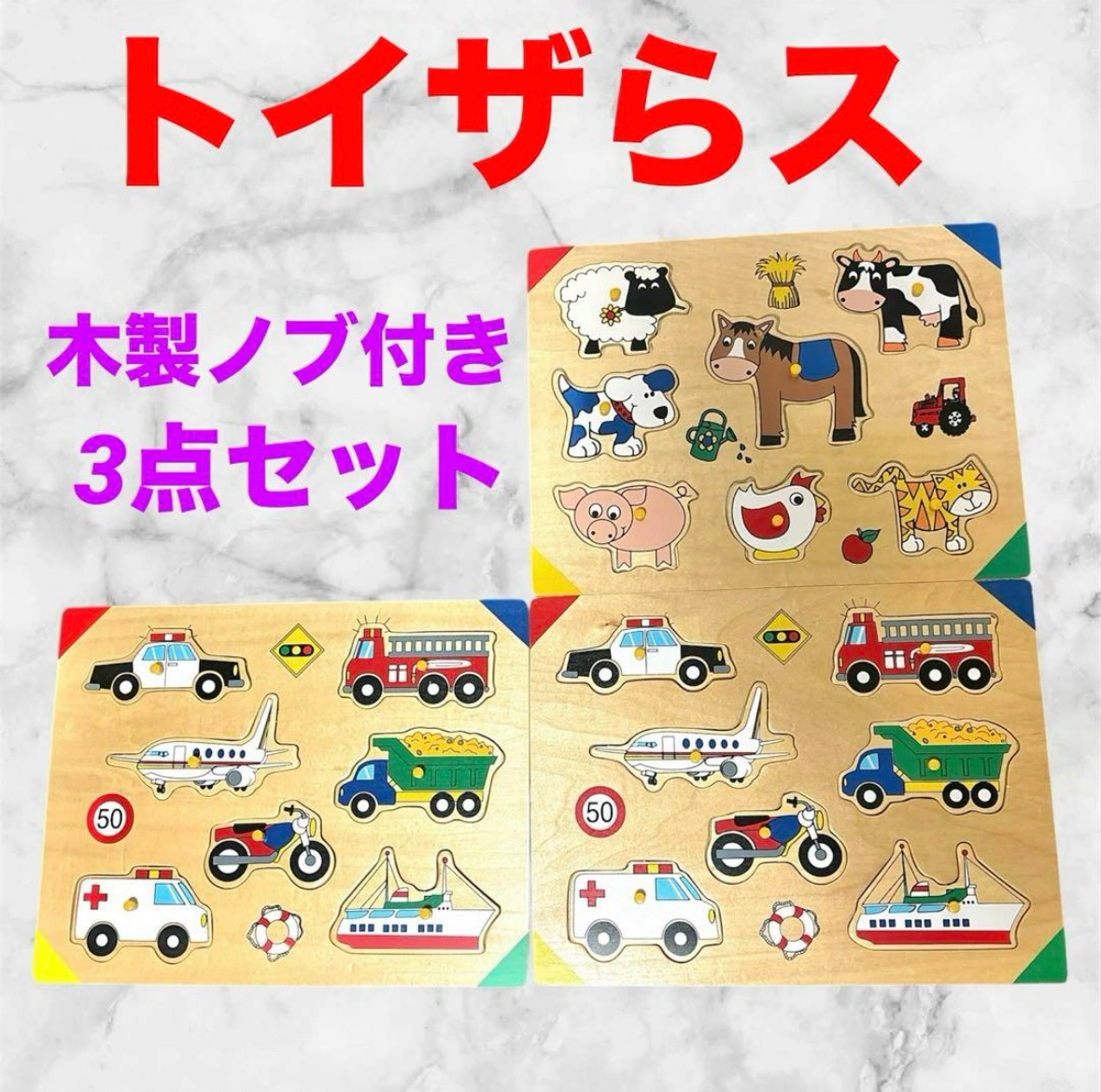 トイザらス 木製ノブつきパズル 3点セット 動物、乗り物 ※乗り物パズルは同じ物になります ベースのイラストと同じ絵のパズルをあてはめよう! 保管による多少の傷はあるかと思いますが、数回しか使用していない為、目立った汚れや破損等はありません。 他サイトでも出品中です。 他で売れた場合、急に削除しますので、ご了承ください