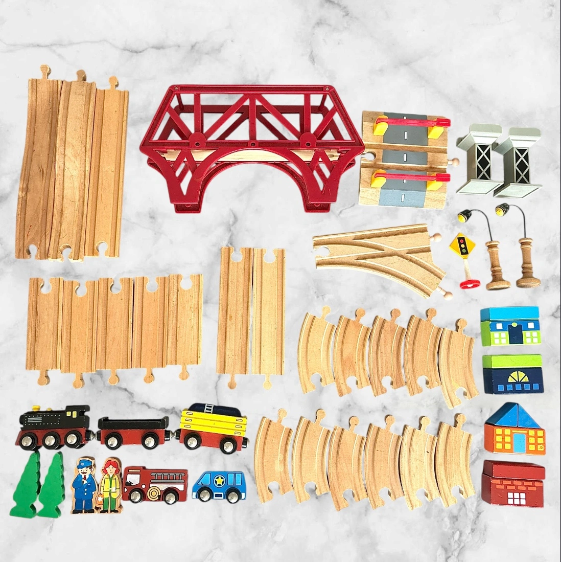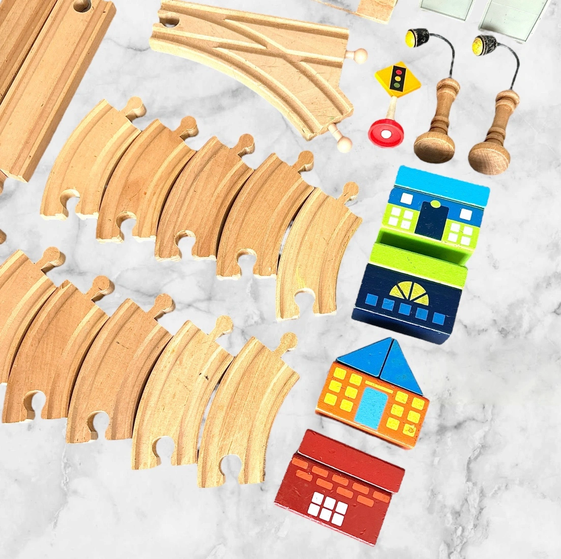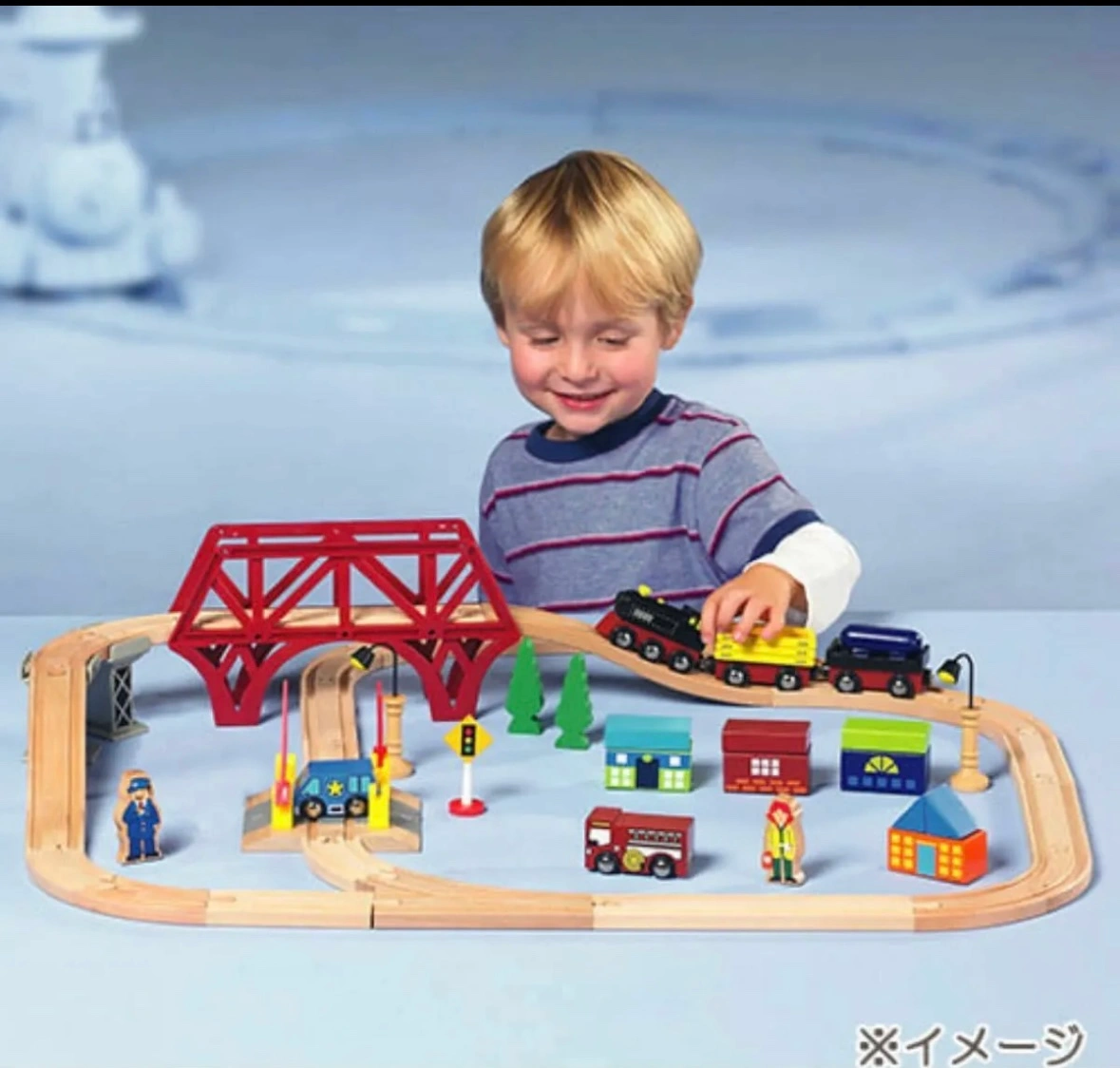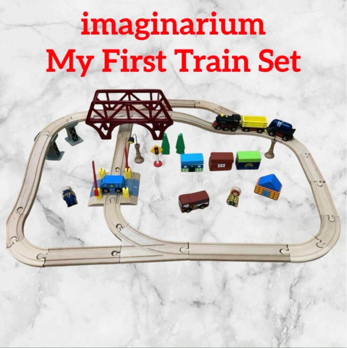 imaginarium My First Train Set 木製レールセット 車両、人形、踏切、家などいろいろ入ってます 保育園で使用していたので、それなりに汚れあります ※画像6枚目のピースが1つありません 中古品ということにご理解頂ける方、よろしくお願い致します。 箱と説明書はありません 他サイトでも出品中です。 他で売れた場合、急に削除しますので、ご了承ください