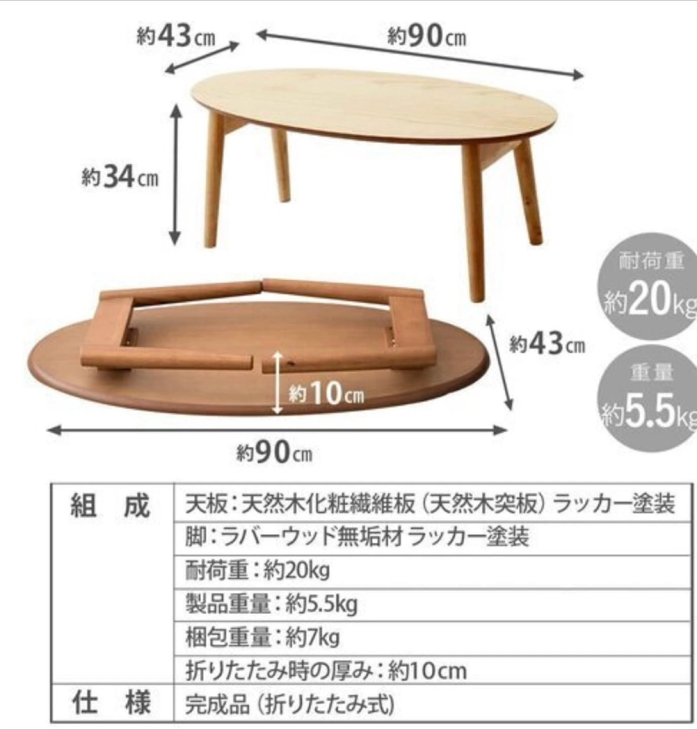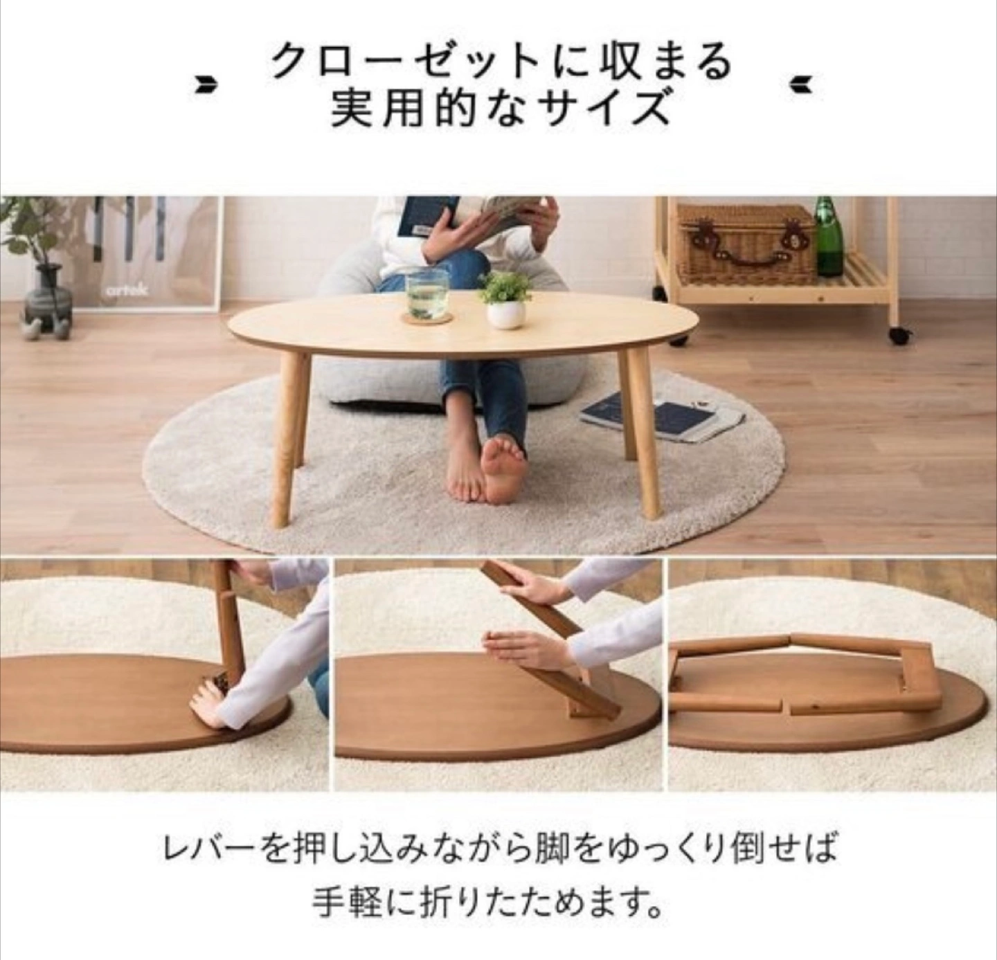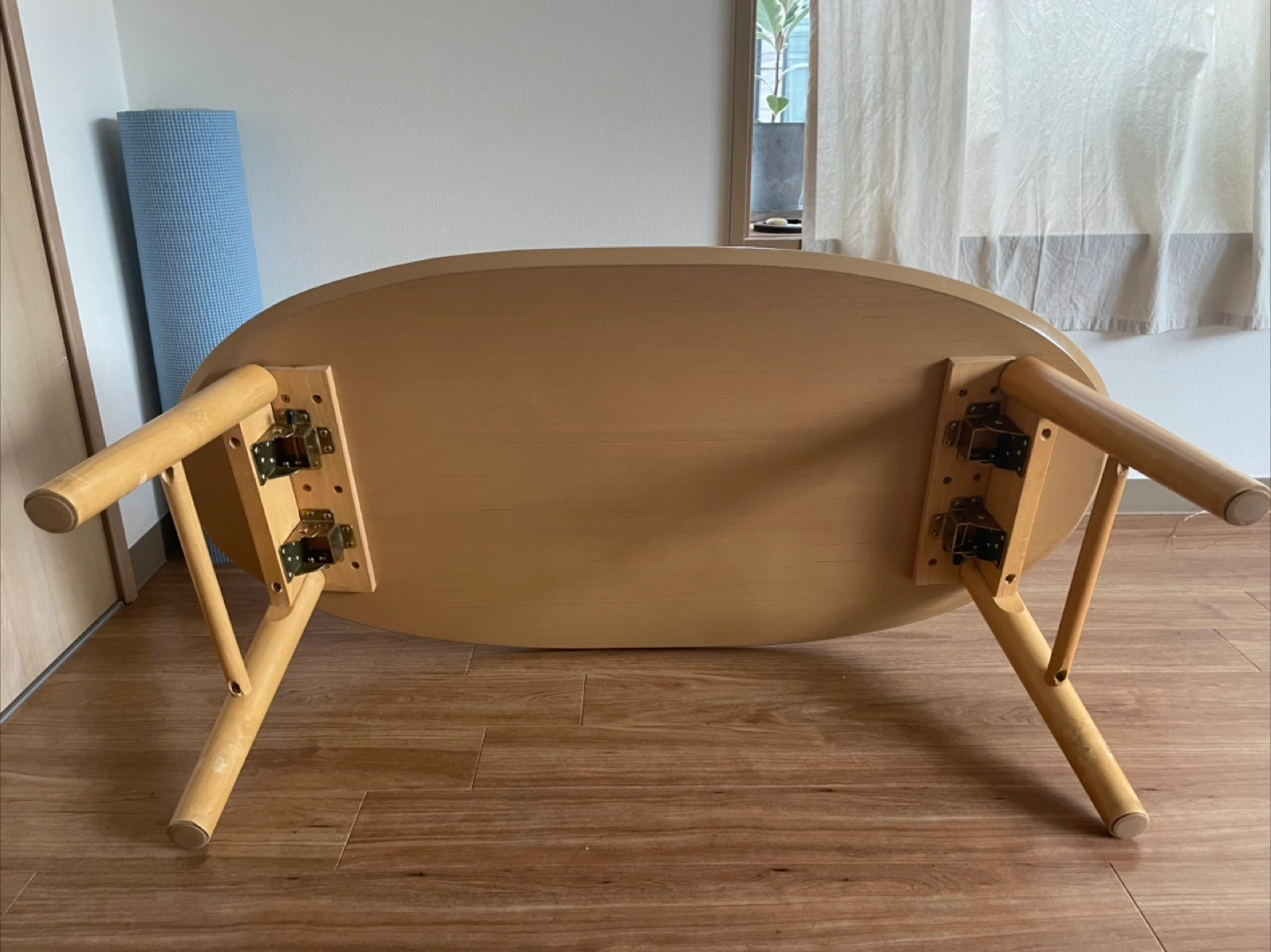 自然な色合いで、どんなインテリアにも合うシンプルな木目調ローテーブルです。 とてもしっかりしているので、重いものを上に載せたりしても安定します。 しばらく使っていましたが、背の高いテーブルと椅子のセットを購入して置き場所がなくなったので手放します。 お写真にもありますように、テーブルの板に擦った傷があります。お写真でご確認ください。 その他は状態は良くまだまだ長くお使いいただけます。 とてもしっかりしていますが、折りたたむことができ、クローゼットの中で収納することができます。 ご自宅まで取りにいただける方でお願いします。